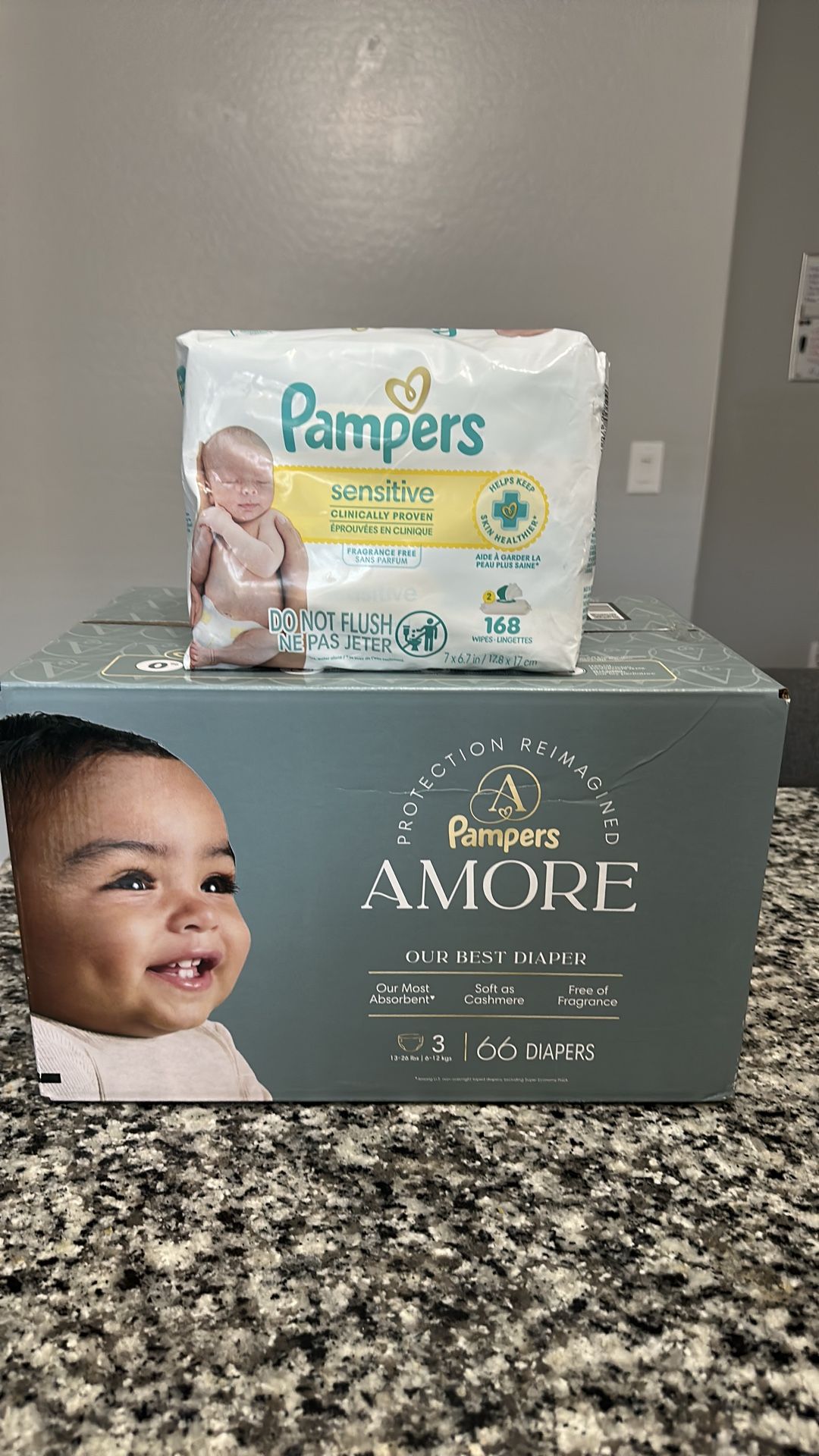 Pampers Amore 66 ct diapers, size 3 Pampers sensitive wipes 168 ct