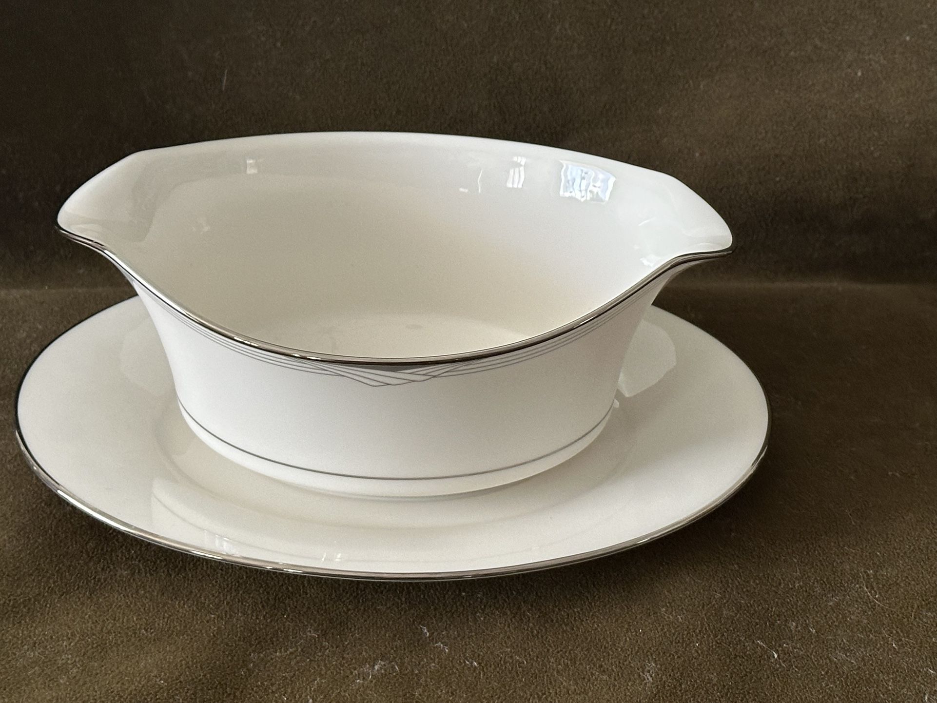 NORITAKE Sterling Cove gravy boat, beautiful silver detail, perfect condition. Fine China