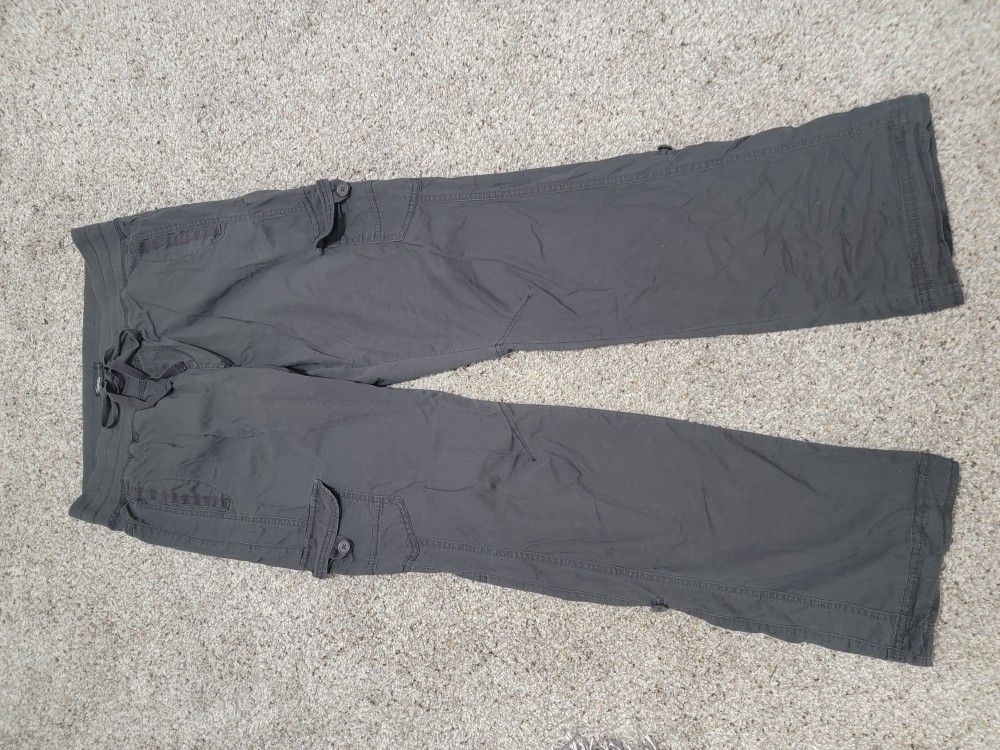 Supplies brand Cargo Pants. 2 pairs. Gray. Elastic waist with drawstring. Pockets. Adjustable length (roll up and button) Size 10 (30w) Soft fabric Very comfortable. Excellent condition. $10 for both or $5 each