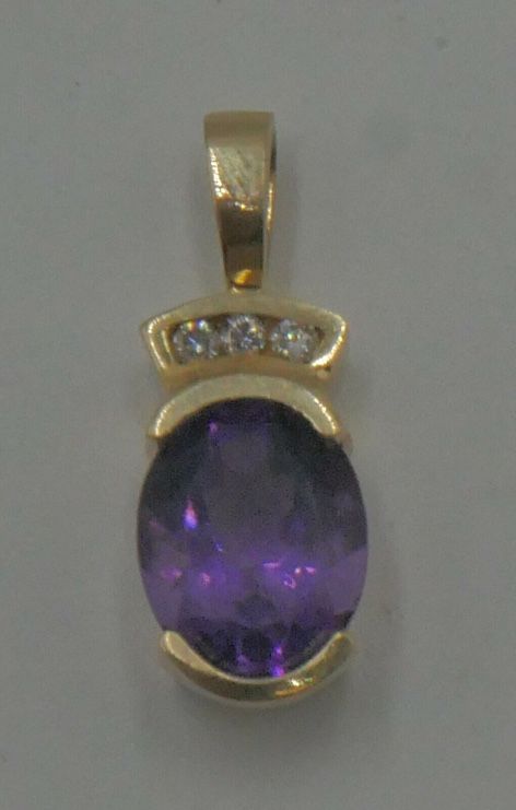 10kt yellow gold pendant 1.6 grams with purple stone and 3 small diamonds mint