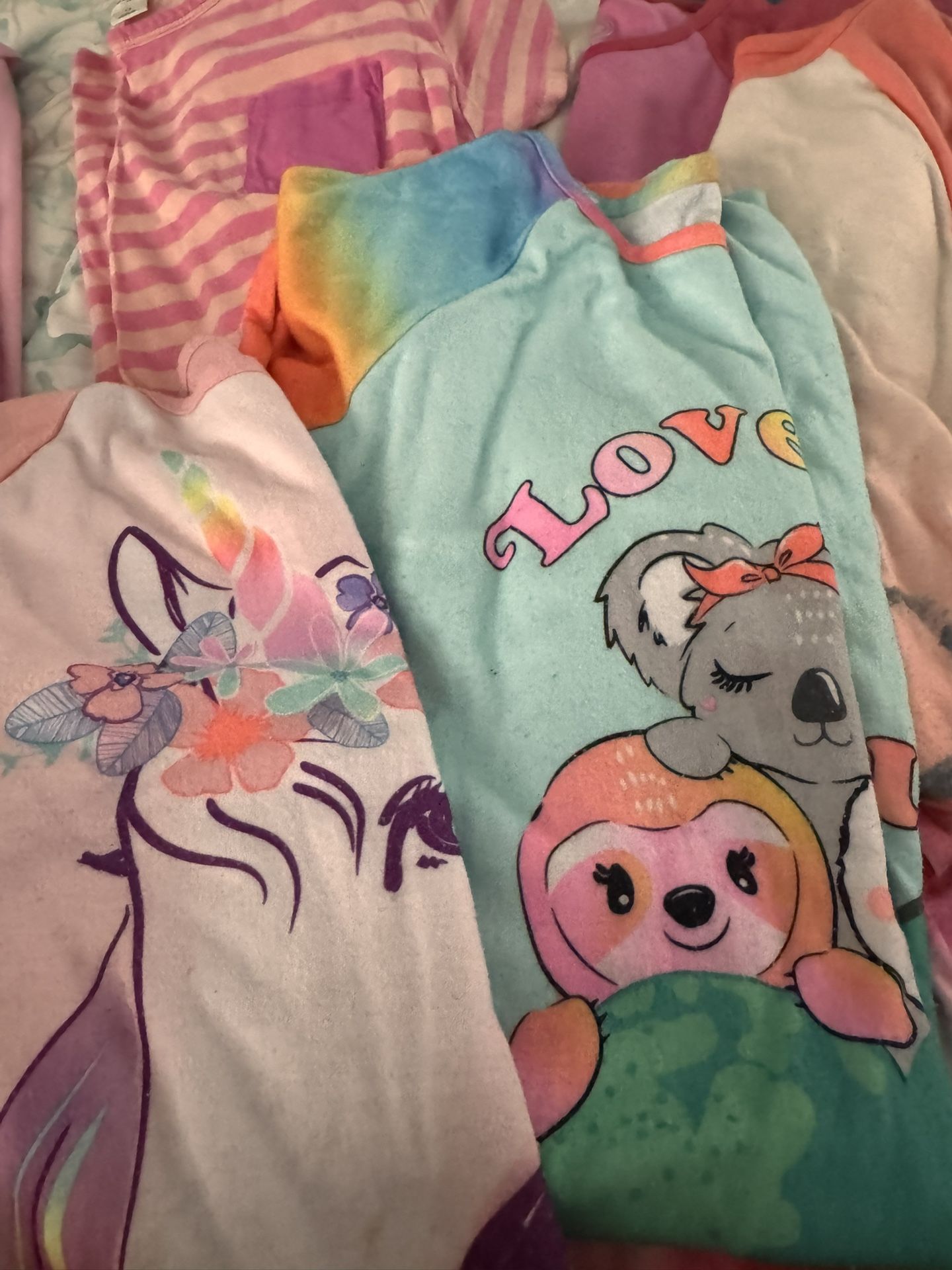 Different designs, panda bears pink light, green blue, one little short like outfit for summer pajamas