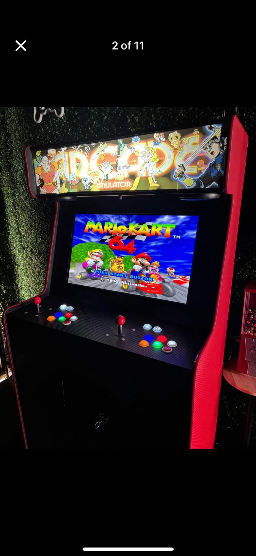 - Works Perfectly - 23,440 Games Installed - Includes 2 Wireless Controllers - LED Light Strip attached behind it - Nintendo 64, PlayStation, Dreamcast & More - Light up Marquee Sign & Buttons - No Issues - Pick Up Only ๐The Perfect Family Christmas Gift! ๐