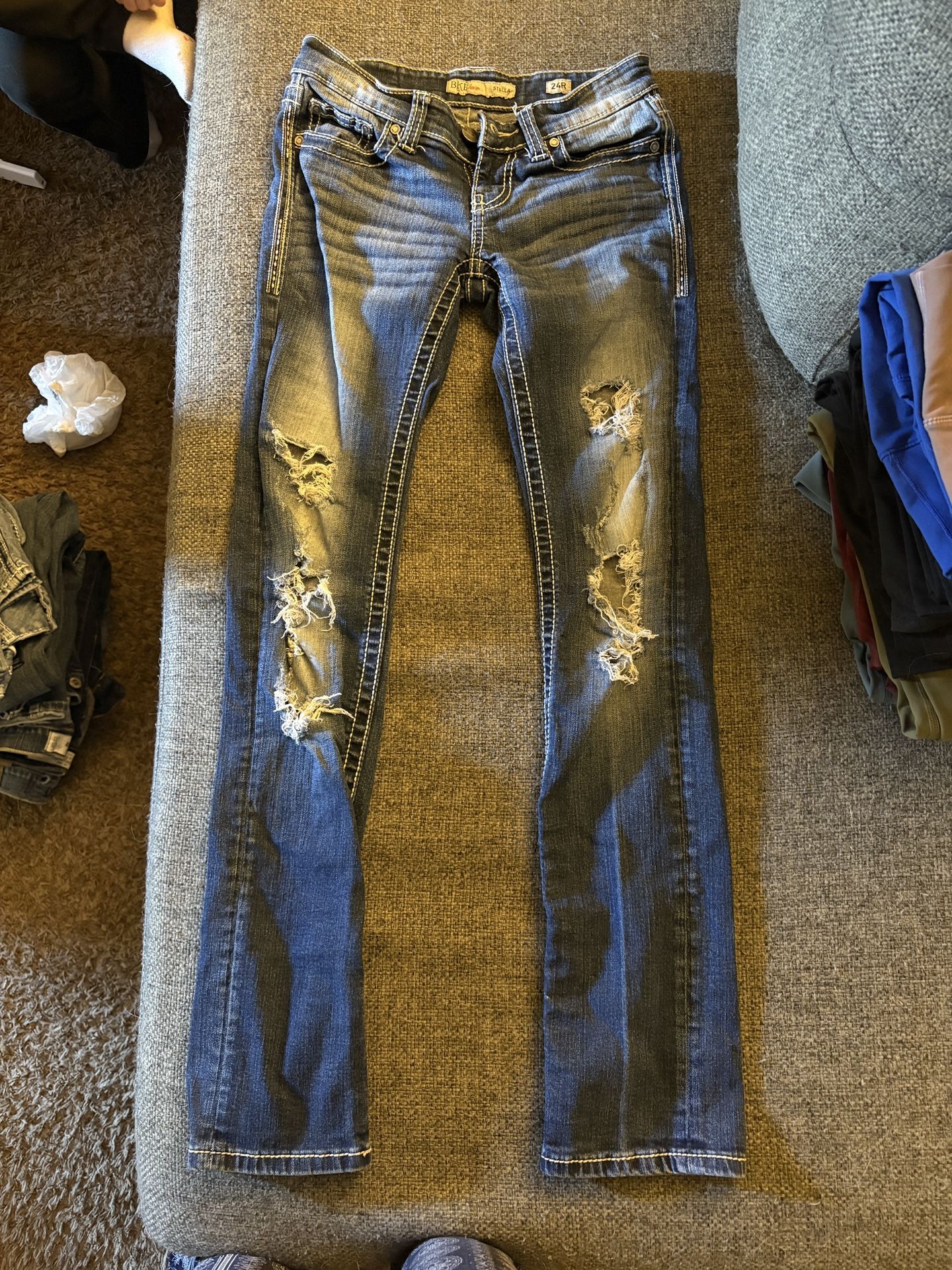 Name brand jeans (Hollister / Abercrombie, etc ) and jean shorts women’s size 0-1 , all in good condition . 11 jeans and 5 shorts. Asking $50 for all OBO (about $3 each)