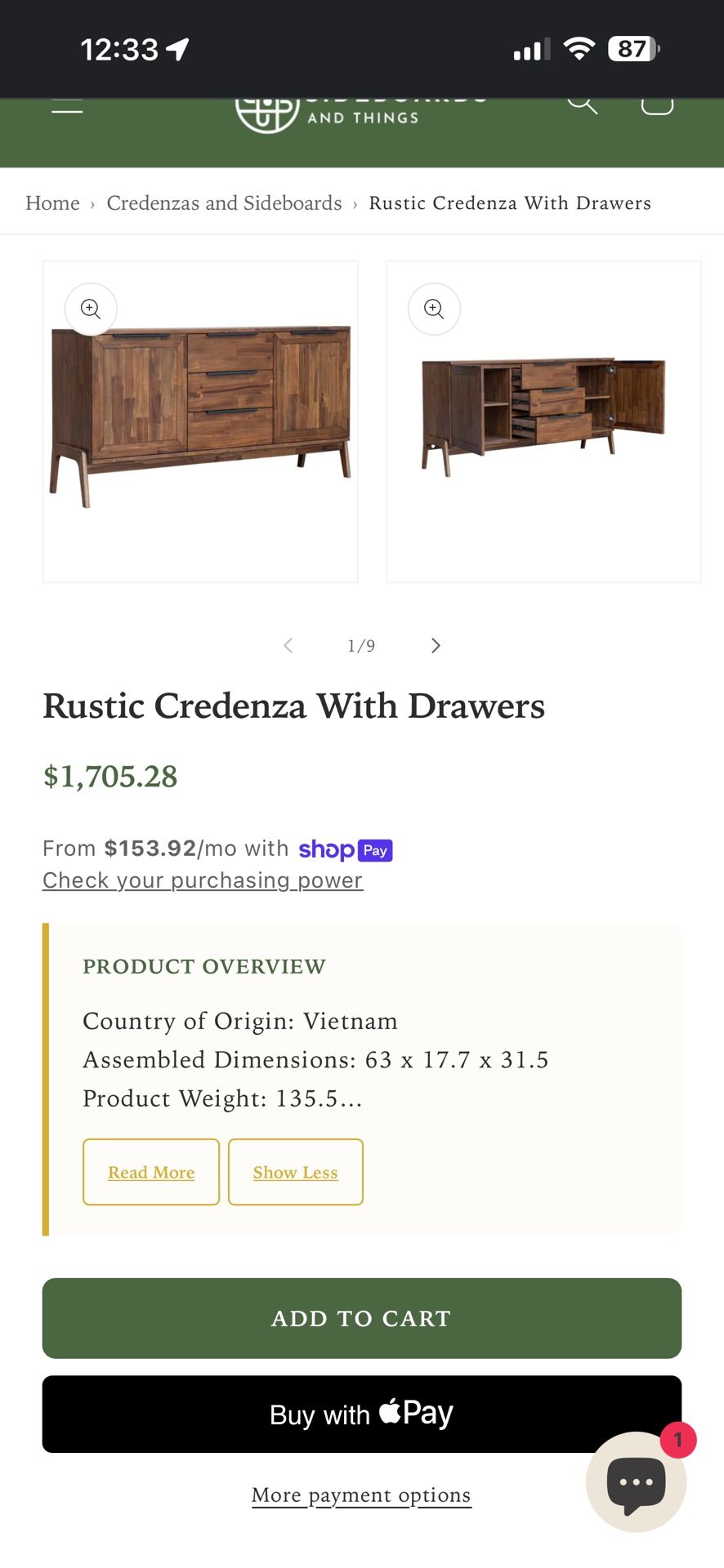 Elevate your dining room with the Rustic Sideboard featuring convenient drawers for effortless organization and serving. Add style and functionality to your space with this bold piece. Unleash the adventurer in you and take your dining experience to the next level! Rustic Sideboard Sideboard for Dining Room With Drawers Take your dining room to the next level with the rustic sideboard. Unleash style and functionality with the drawers, which make organizing and serving easy. Rustic Sideboard Sideboard for Dining Room With Drawers Features: Country of Origin: Vietnam Assembled Dimensions: 63 x 17.7 x 31.5 Product Weight: 135.5 3 Drawers and 2 open spaces Drawers 17.7 x 13.3 x 4" Open spaces inside 19.3 x 16.3 x 10" The shelving is adjustable and removable Weight Capacity: 170 lbs The color palette and finish: Brown, Antique Black Primary Material: Solid Acacia Wood, Acacia Veneer Assembly: Ships fully assembled Care Instructions: Dust frequently with a clean damp lint-free cloth. This will help remove abrasive buildup which can damage a finish over time. Do not place hot objects on any furniture surface. Avoid exposing your furniture to strong sunlight, heat outlet, open windows or dampness. Prolonged exposure to direct sunlight can fade the finish of your furniture while extreme temperature and humidity changes can cause cracking or splitting. Do not expose your furniture to any liquids. Never allow water to sit on your furniture, wipe away spills immediately. Alcohol, nail polish, and perfume are also dangerous because they can dissolve the furniture finish on contact and may require professional repairs.