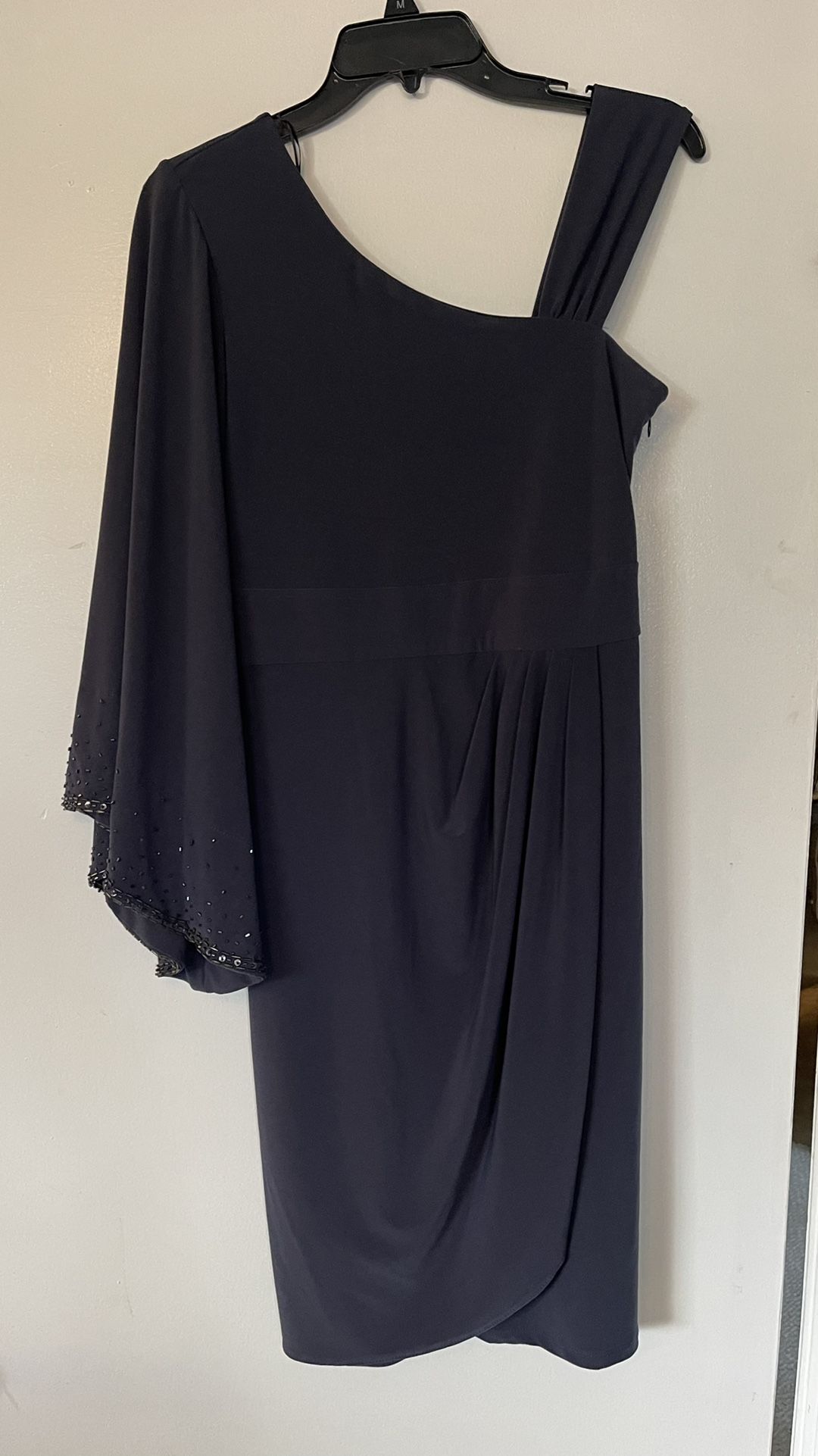 Beautiful, grey‘ish/blues’ish color, elegant, one bell sleeve with beading detailing, perfect for a wedding guest, formal or cocktail occasion, worn only once!