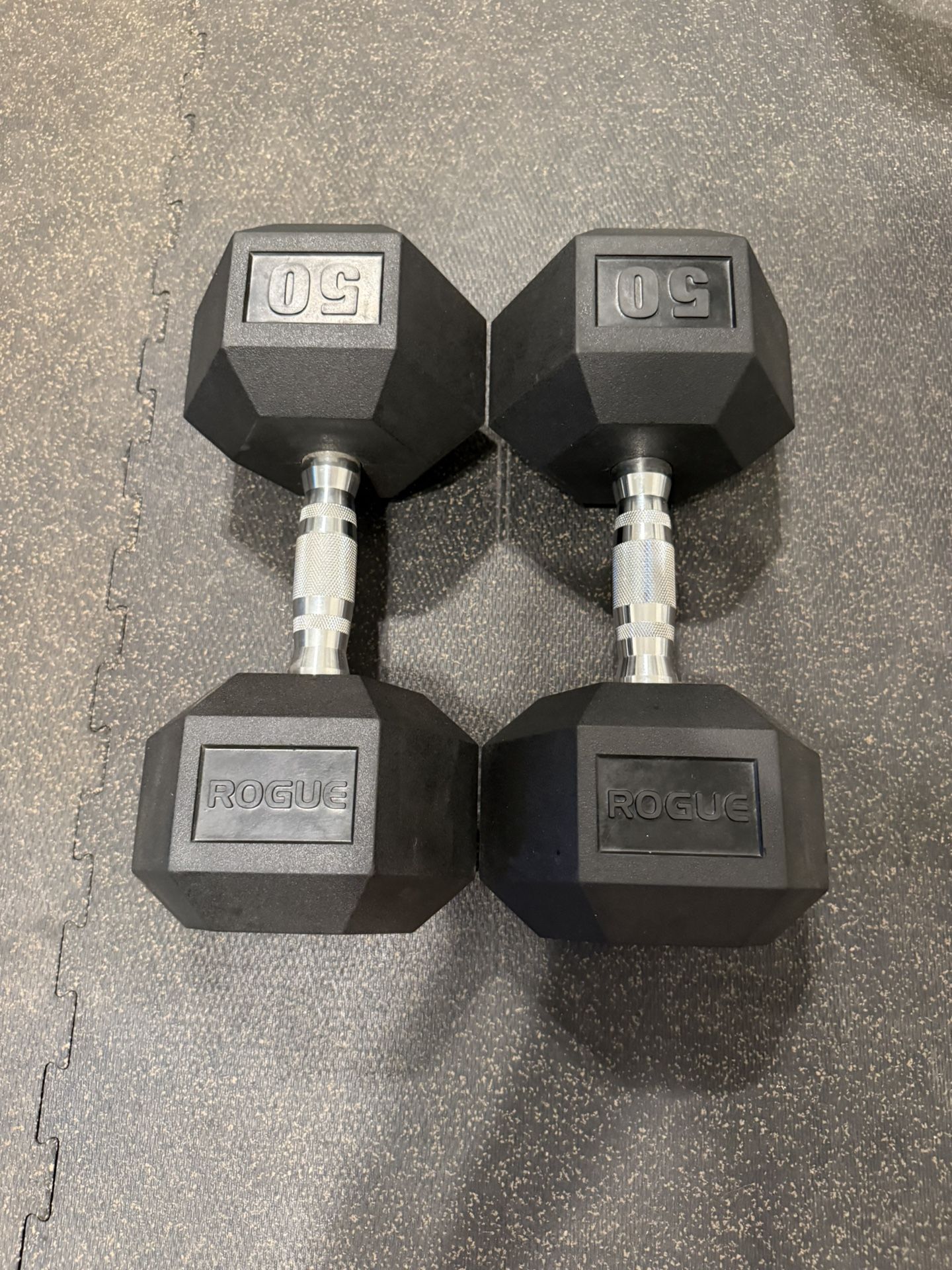 Rogue 50lb rubber hex dumbbells