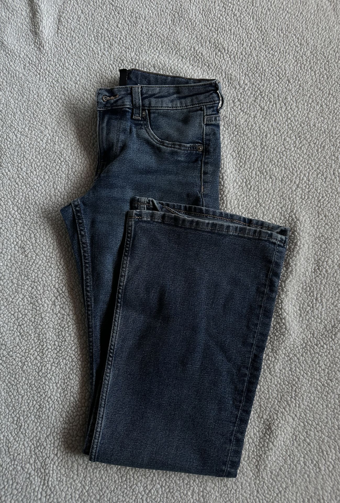 Dark wash flared jeans Low rise/Mid rise Great Material Used: Once EUR - 36 US - 4 CA - 4 MX - 4 CN - 165/68A