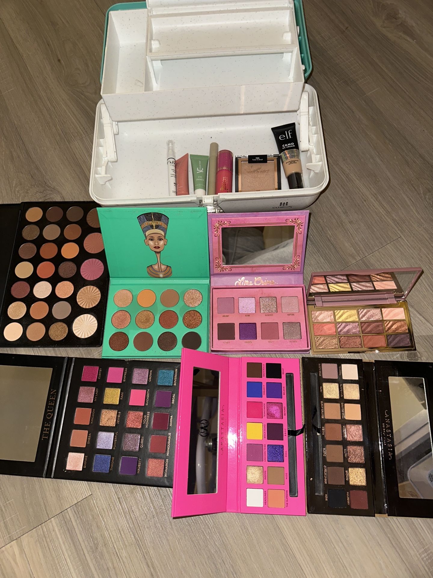 Includes various brands and shades. Can be sold separately Each palette 10$ Extras & caboodle 10S Lashes 10S Perfume all 3 60S Separate Rihanna 10$, MK 40$, Viktor & Rolf 10$ EVERYTHING 140$