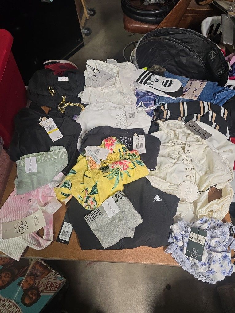 Lots of brand new clothes with tags still on them. Micheal kors Almost famous Adidas Rebook Victoria secret