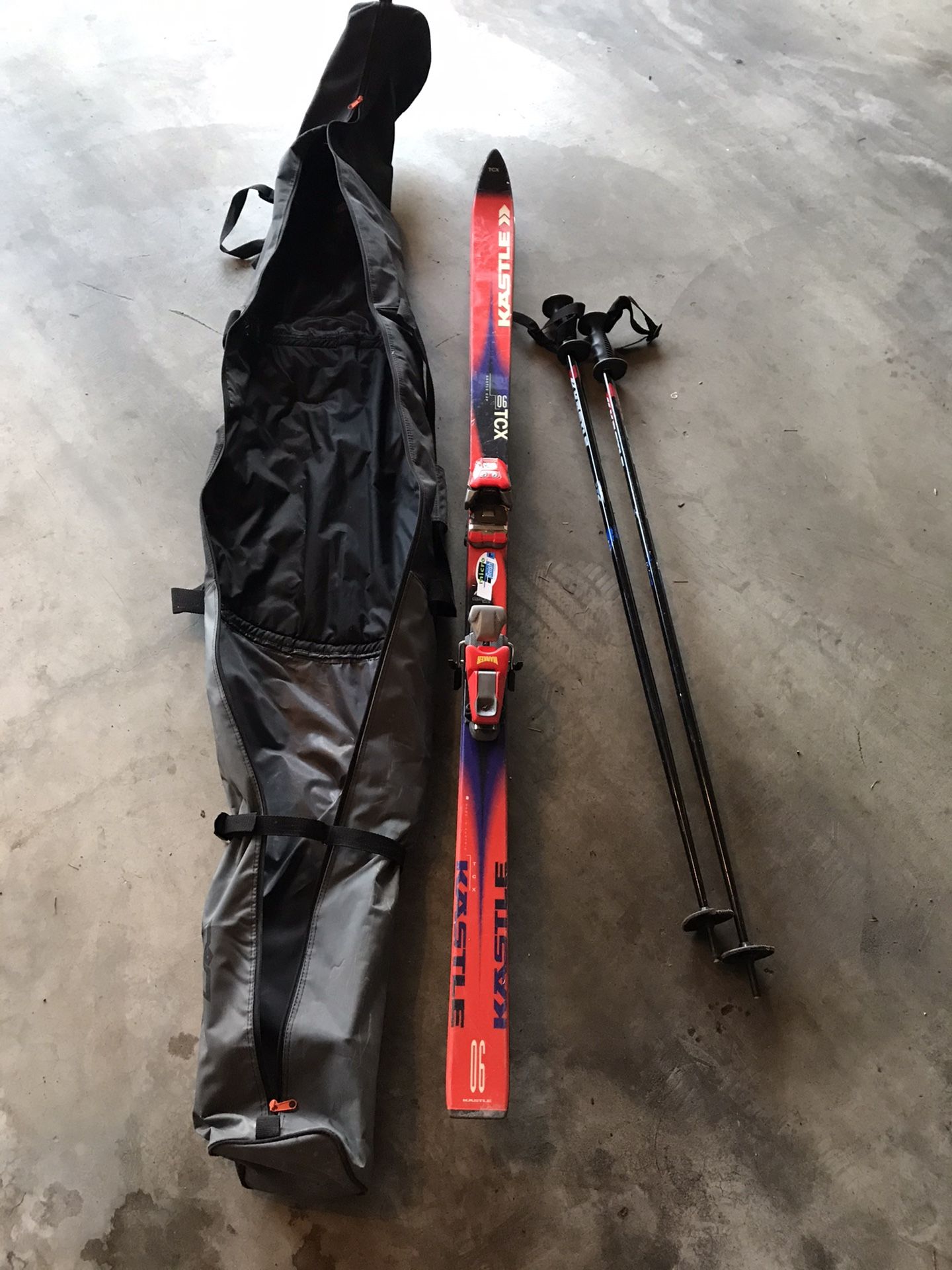 KASTLE SKIS 185CM TCX 90 WITH SALOMON BINDINGS AND POLES