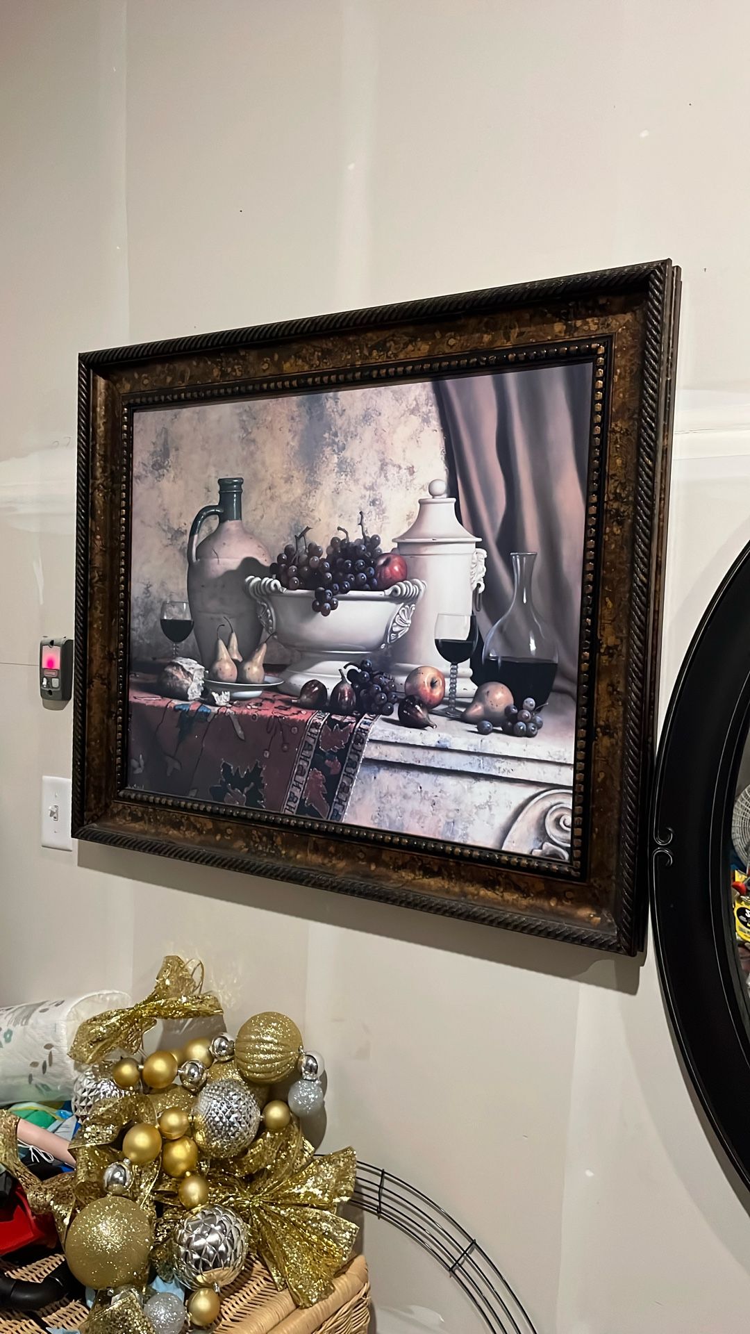🌟 Painting “Still Life with Grapes” 🌟 This exquisite piece, created in a classic style, will become a true highlight of your interior. The canvas depicts an elegant still life: lush clusters of grapes, ripe fruits, and graceful pitchers arranged against a backdrop of antique drapery. Warm tones and fine details create an atmosphere of comfort and luxury, reminiscent of the works of old masters. The painting is framed in a massive, ornate frame with a bronze-golden finish and a beautiful embossed design, adding sophistication and emphasizing its artistic value. ✨ Perfect for a living room, dining room, or office, bringing a touch of elegance and timeless classic charm.