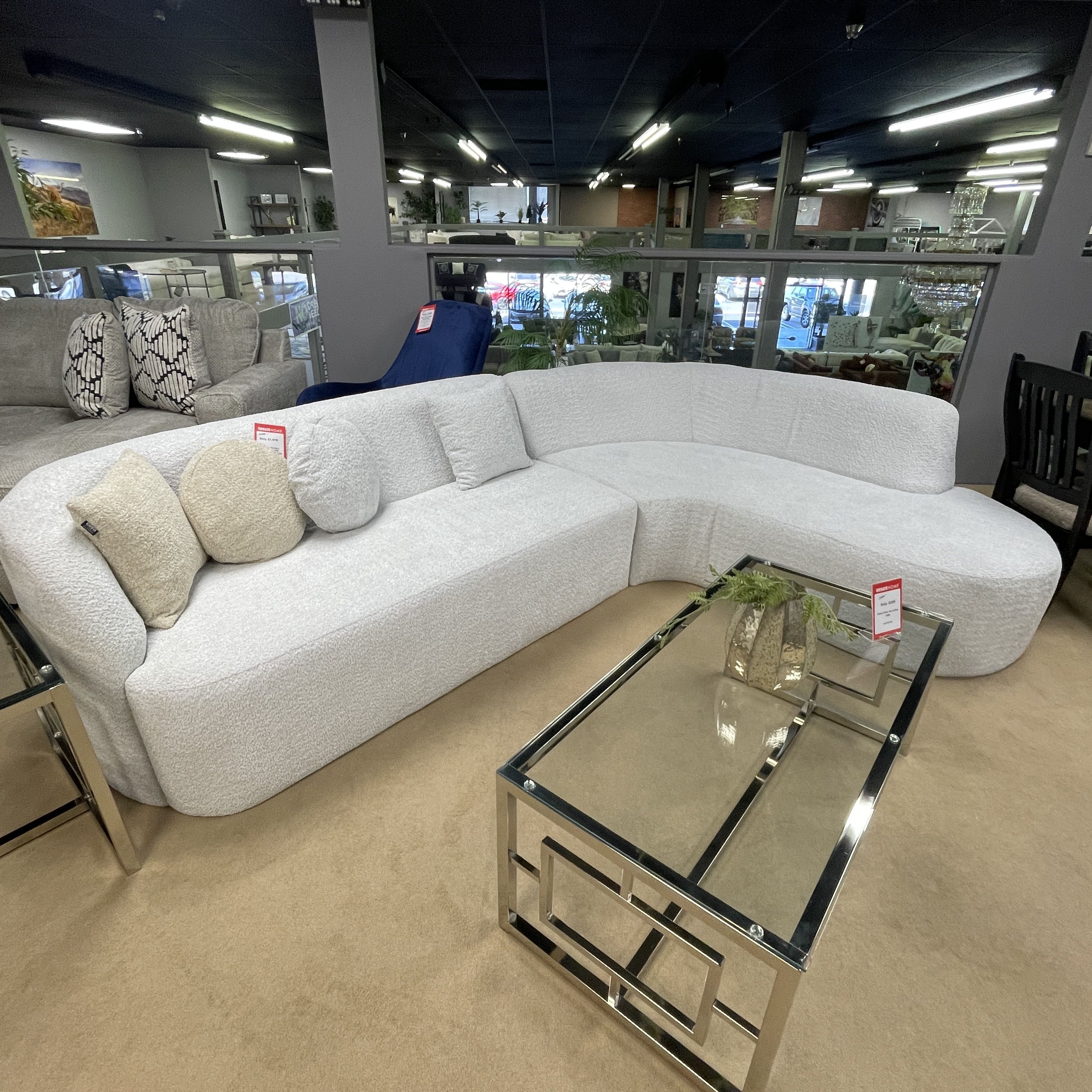 Nevada Ivory Boucle 2pc RAF Chaise Sectional Sofa Teddy Sherpa Uph.