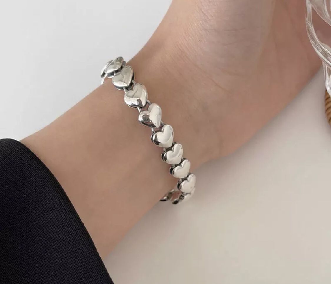 Hearts Bracelet Length:7.25”-8.75”(18cm-22.5cm) Bracelet Width: 6mm Weight: 14g Color: silver Delivery: ready to ship in same day or next business day.