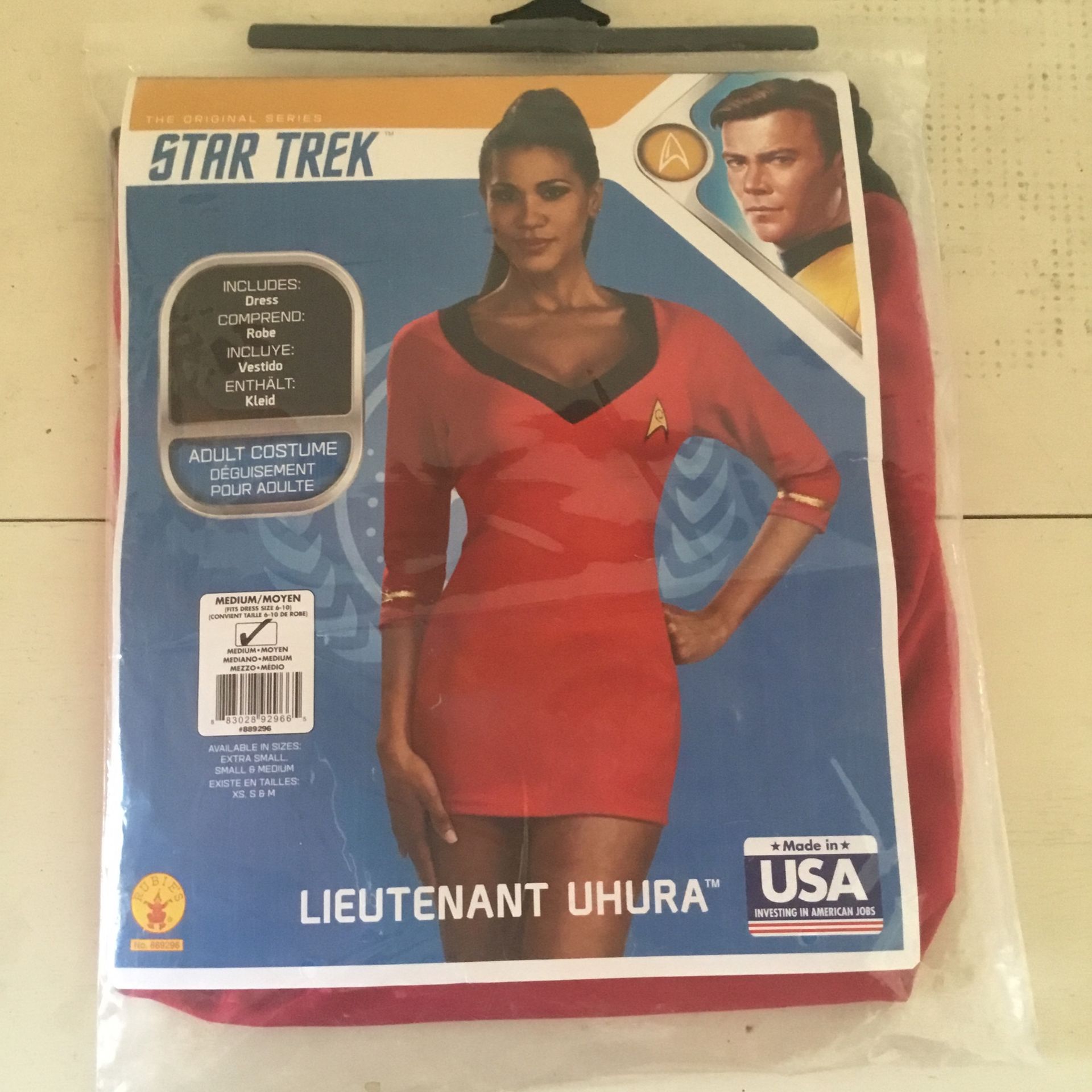 Halloween Costume Brand, New Star Trek Lieutenant UHUHA. Includes dress robe medium size. Official unopened package hard to find.