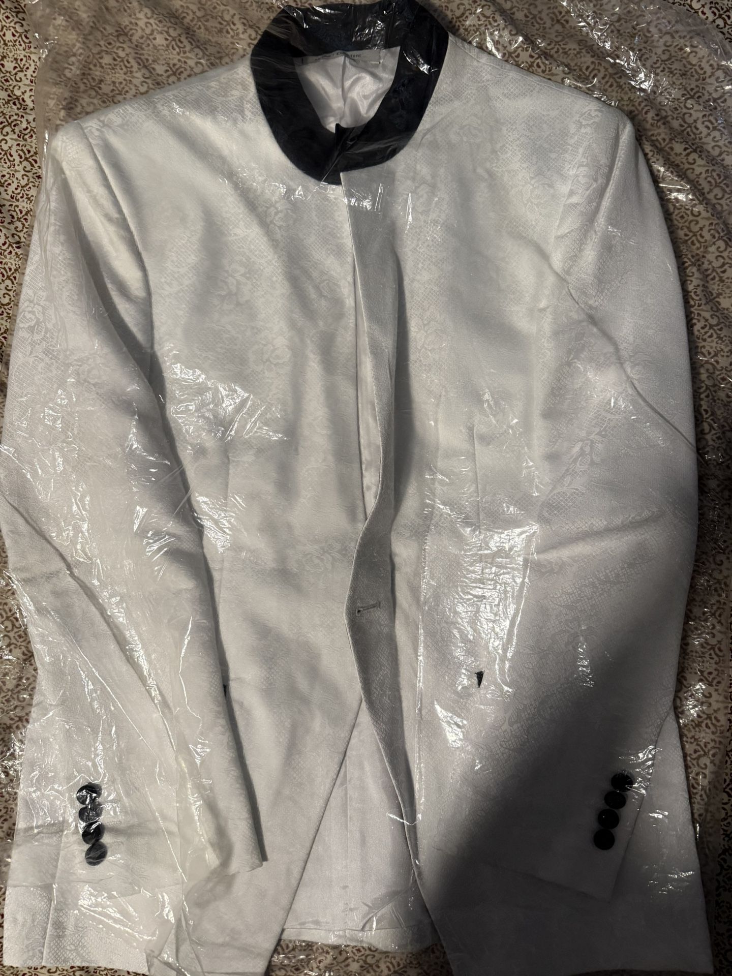 Mehmet Emin Teke Men’s White Tuxedo Jacket & Vest – Black Lapel – Formal / Prom