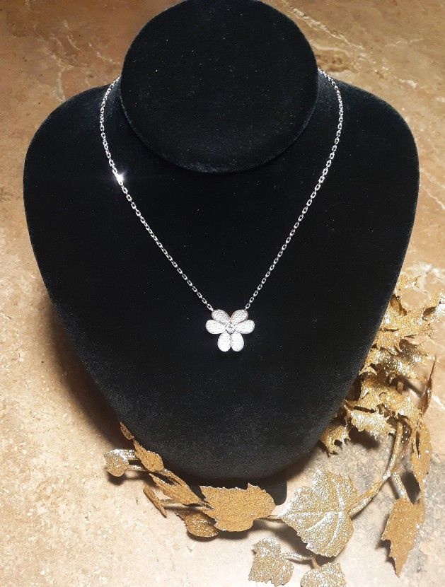 14k White gold Diamond Flower Pendant Necklace
