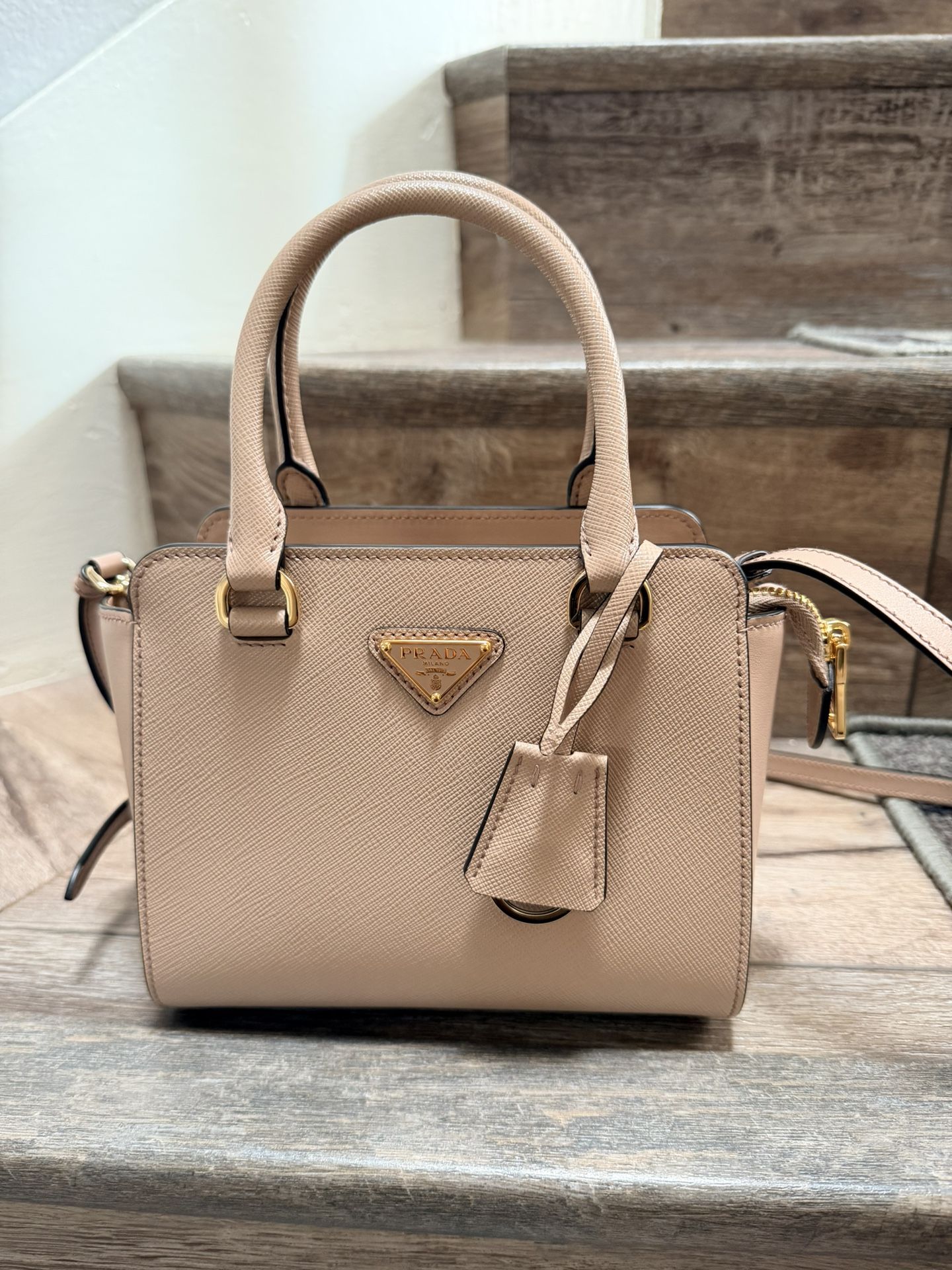 The bag is in like-new condition. It was purchased impulsively and has never been carried. It includes the original dust bag and shopping bag.