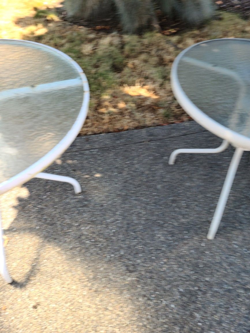 Glass top round table Metal Frames tables only chairs are not included $20 each or take both for 30 pick up in Tenino near the speedway