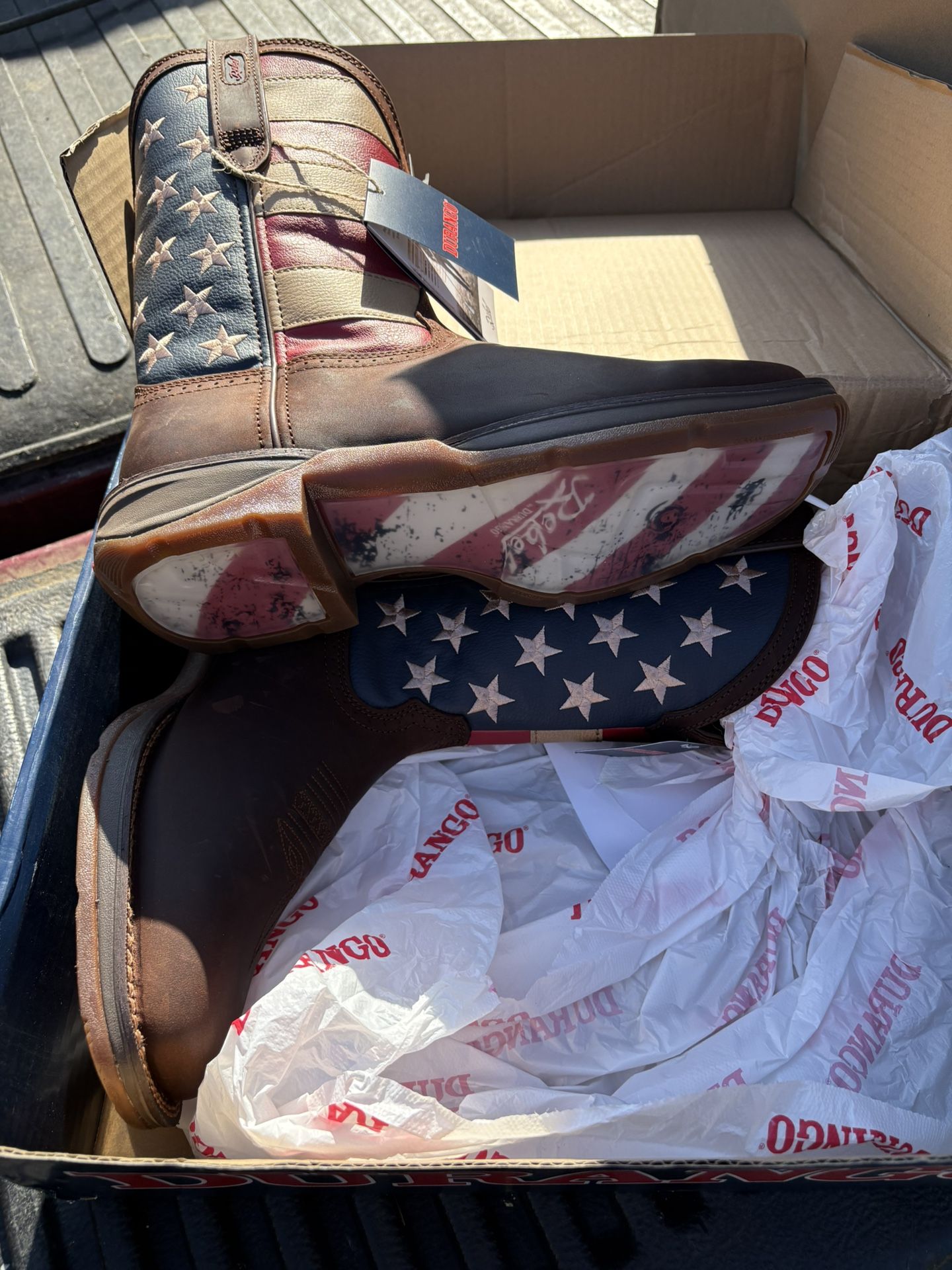I have a few of these Durango Rebel USA flag boots. Going for $120!!!! HMU to see if I have your size available. Running out quick!!!