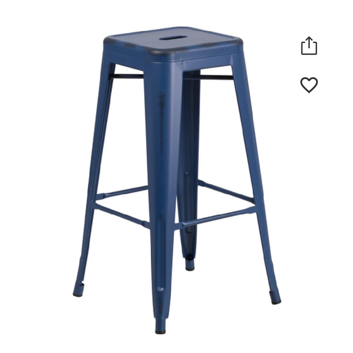 Trent Austin Design. Sturdy blue metal bar stool with a square seat. Antique blue. Great condition, it’s meant to look rustic. 26” tall, seat is 12” x 12”. Width at bottom is 16” Retails for $90+ (purchased for $115) Pickup near California and Divisadero.