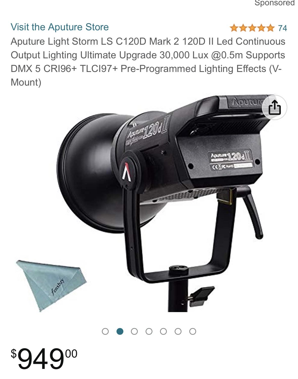 Professional stage lighting Aputure Light Storm LS C120D Mark 2 120D II Led Continuous Output Lighting Ultimate Upgrade 30,000 Lux @0.5m Supports DMX 5 CRI96+ TLCI97+ Pre-Programmed Lighting Effects (V-Mount) RETAIL BEFORE TAXES : $979 OUR PRICE: $725