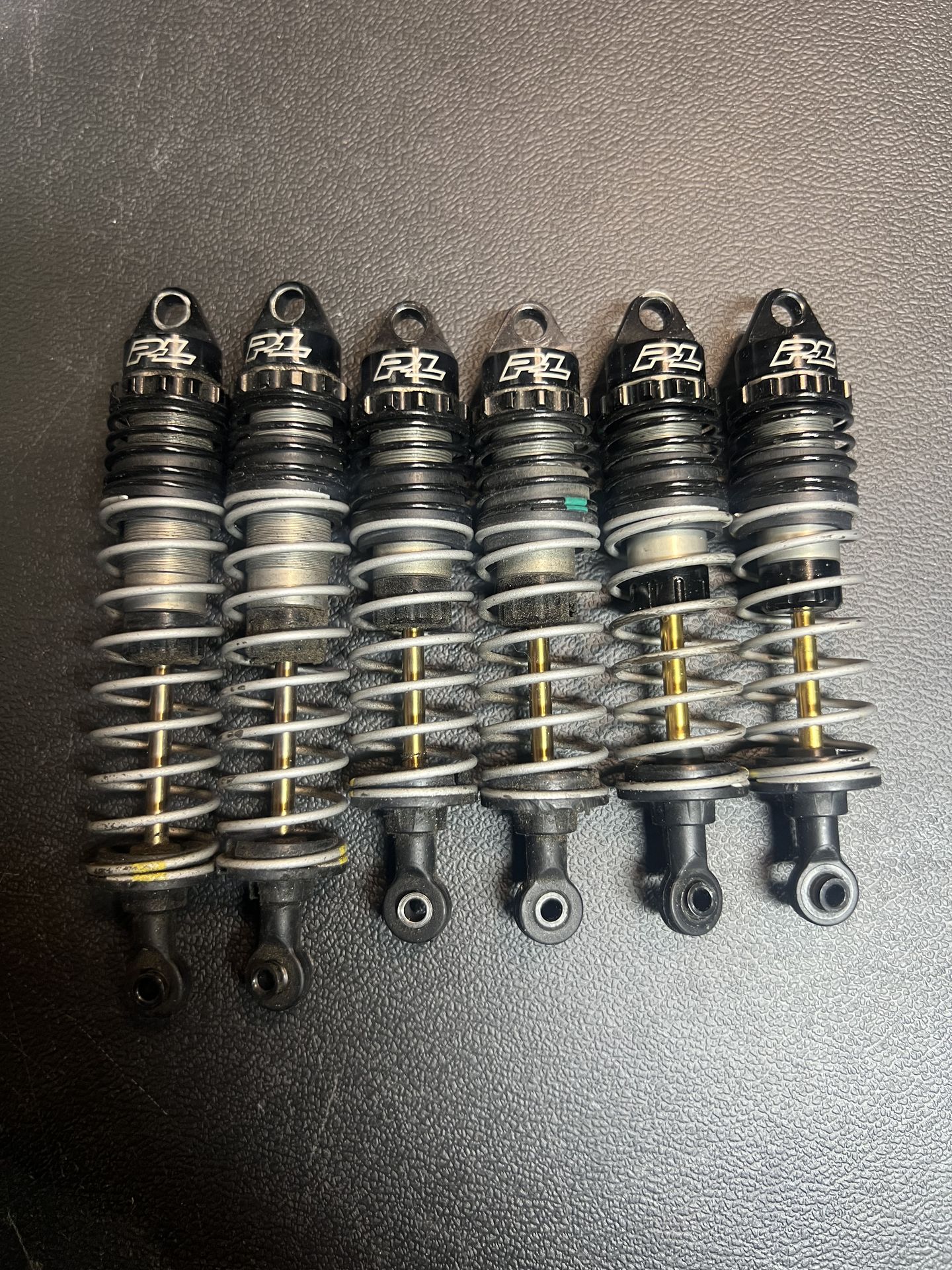 I bought this set for one Traxxas slash’s. Used it for about 2 batteries and then took them off. I bought another set of fronts for a rally project. Used them there for a few batteries and the. Sold that car. Only selling the set of 6 won’t separate Should fit any short course truck.