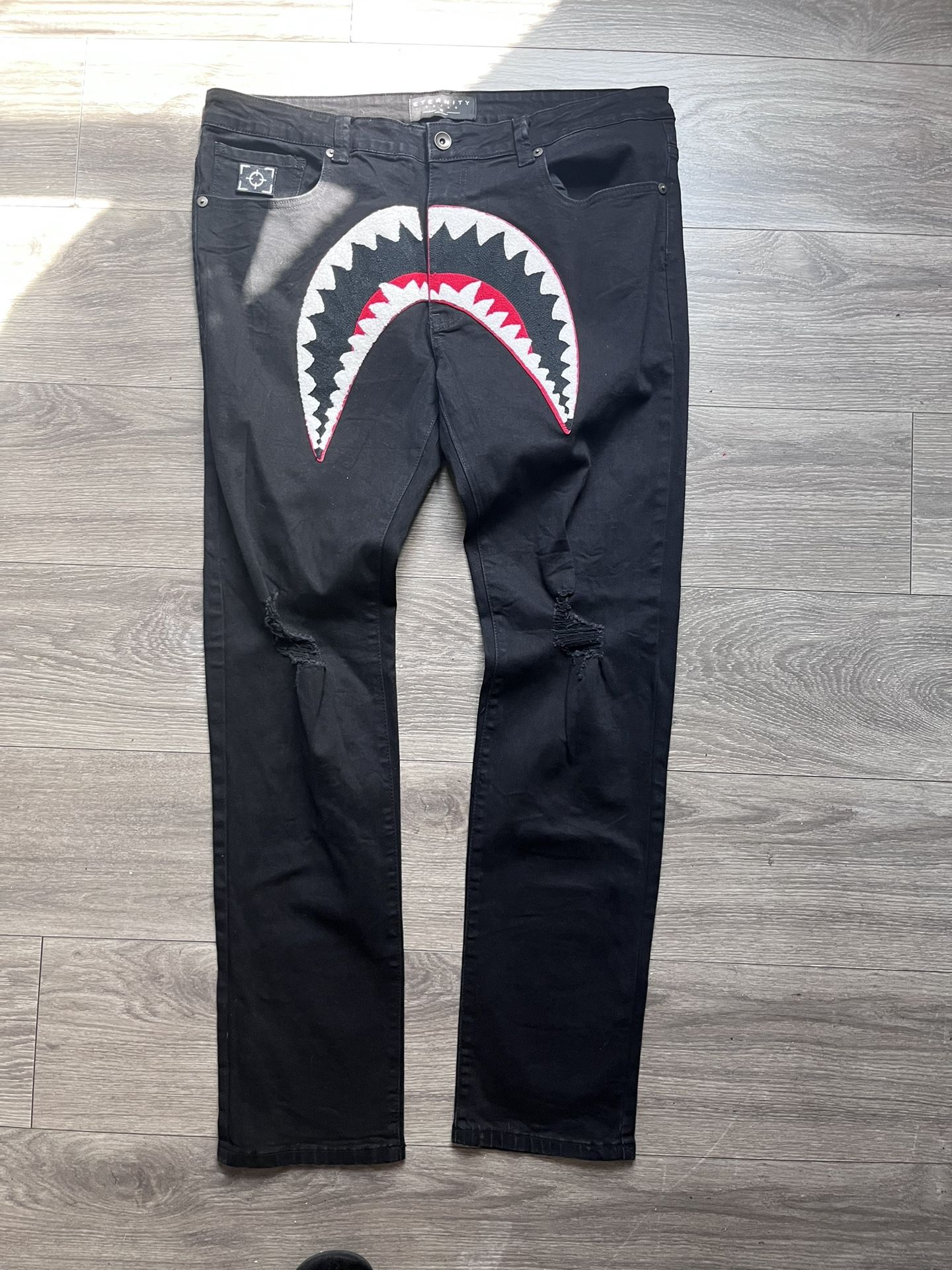 Eternity Jeans BC/AD Mens Black Dark Wash Distressed Straight Leg Size 38