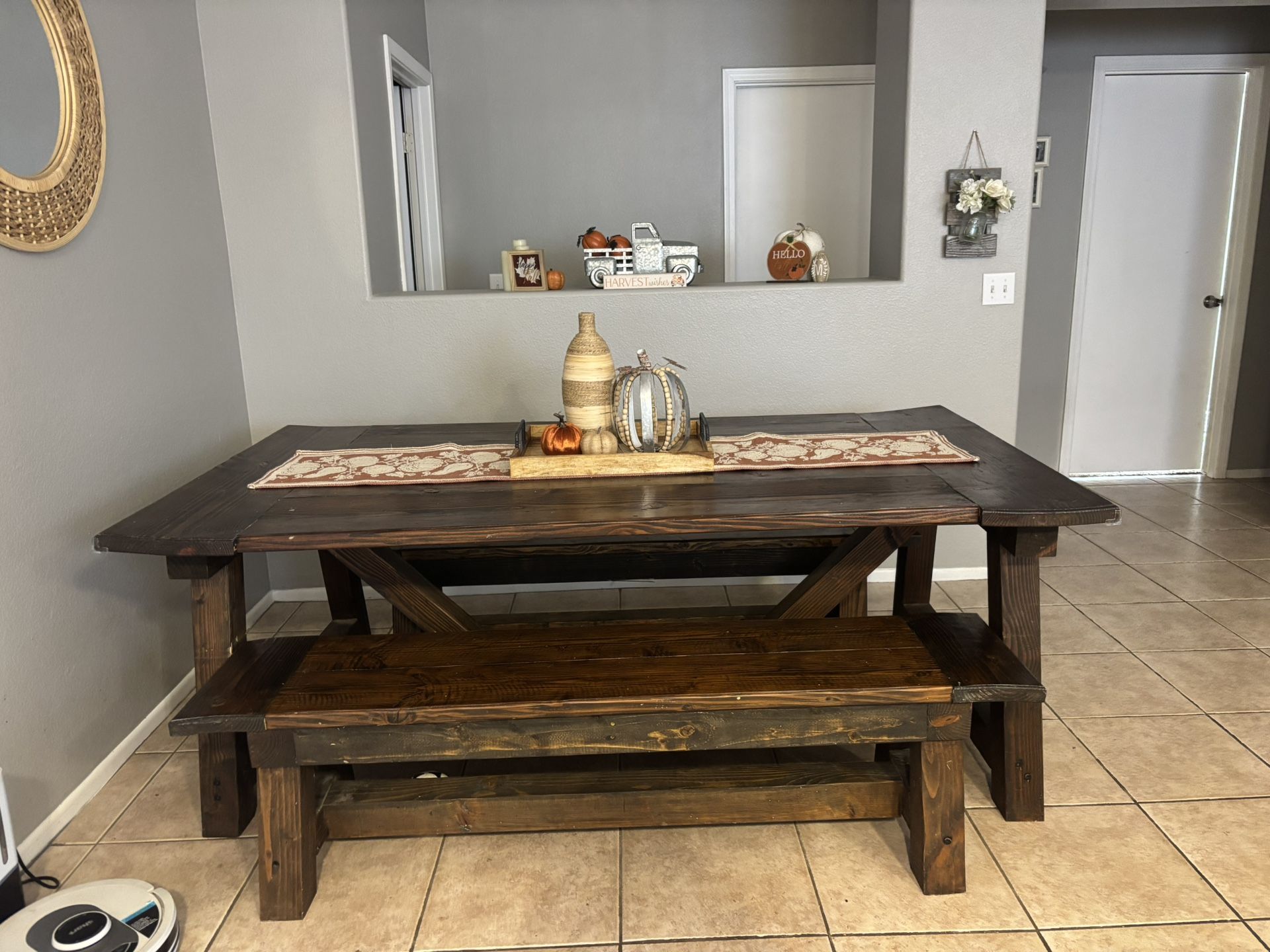 Large dining table fits 4 on each side comfortable. DIY project minor chips and slight on end pieces see picture. $100