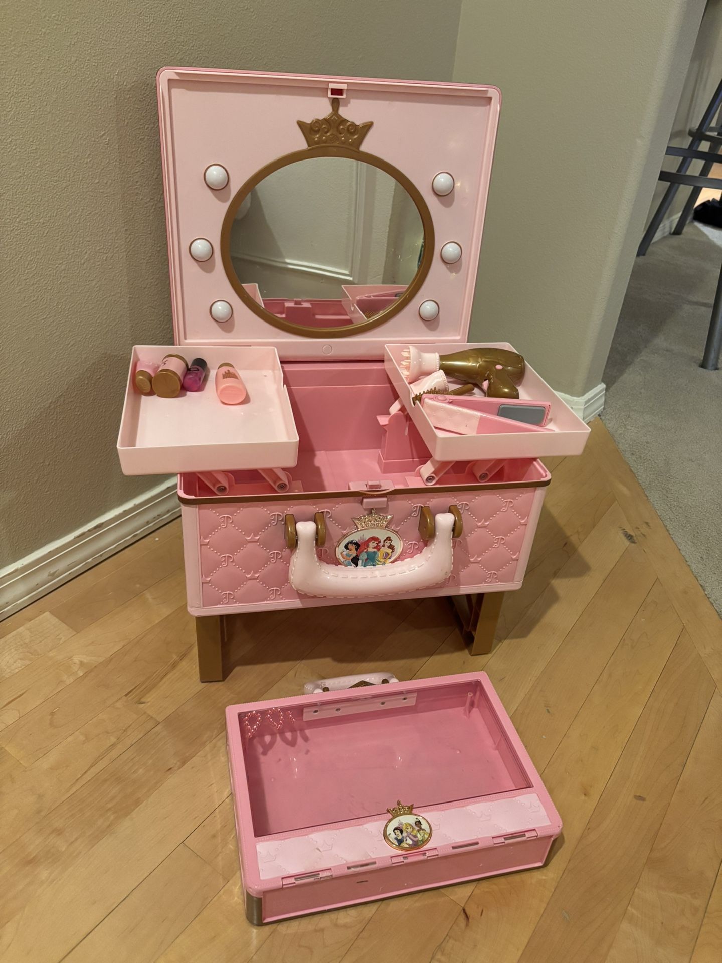 Princess vanity and carry case Accessories for vanity Hair dryer makes noise and has 2 attachments Pretend play/girls/todder girl/toys/princess