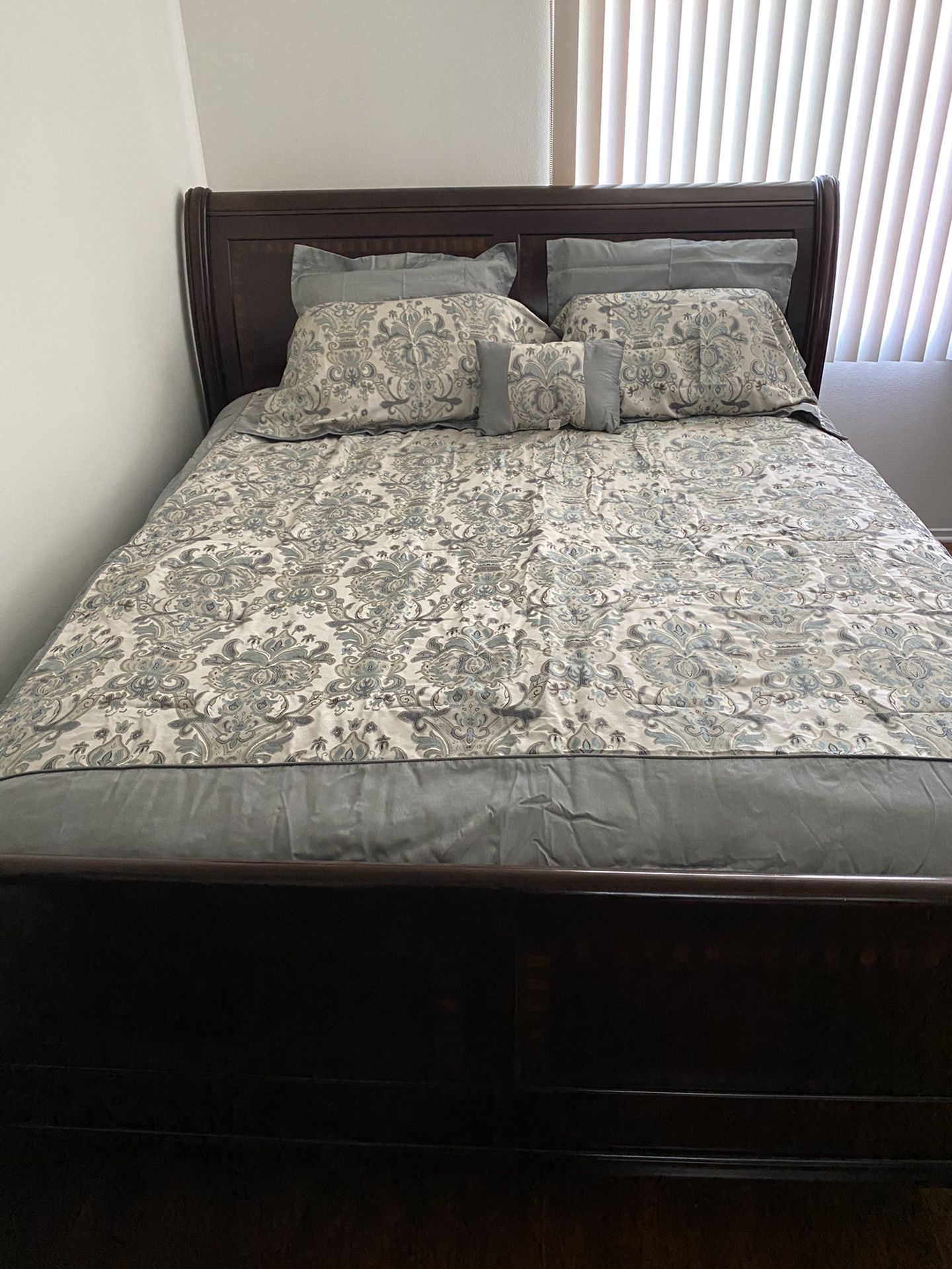 Cali King size bed, perfect condition, includes mattress and bedding cover. Price is $700