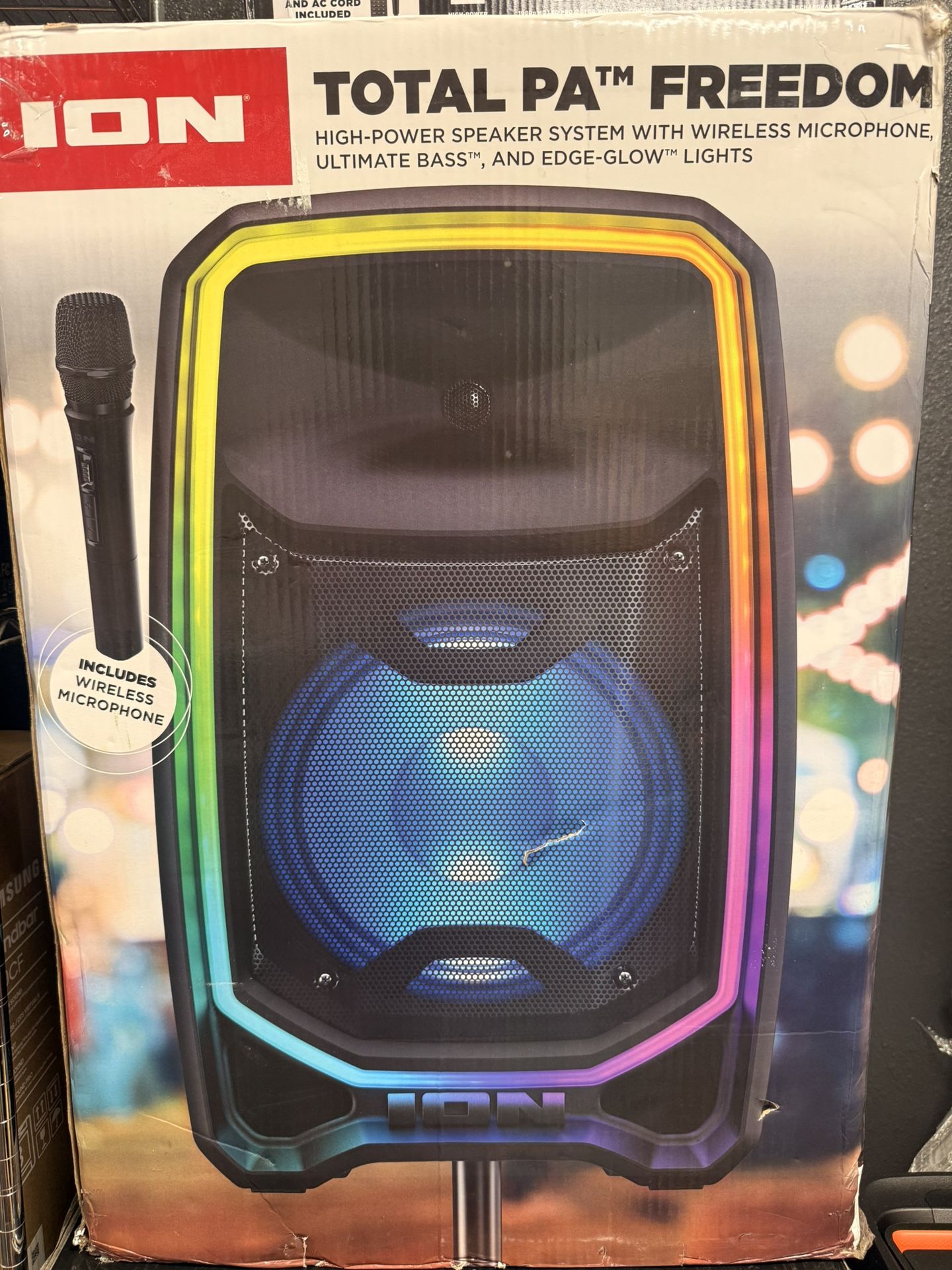 Fun Bluetooth party speaker with colorful LED lights and microphone 🎤 perfect for karaoke, parties, and gatherings. Loud sound, easy to connect, and portable. Works great. Ready to use.