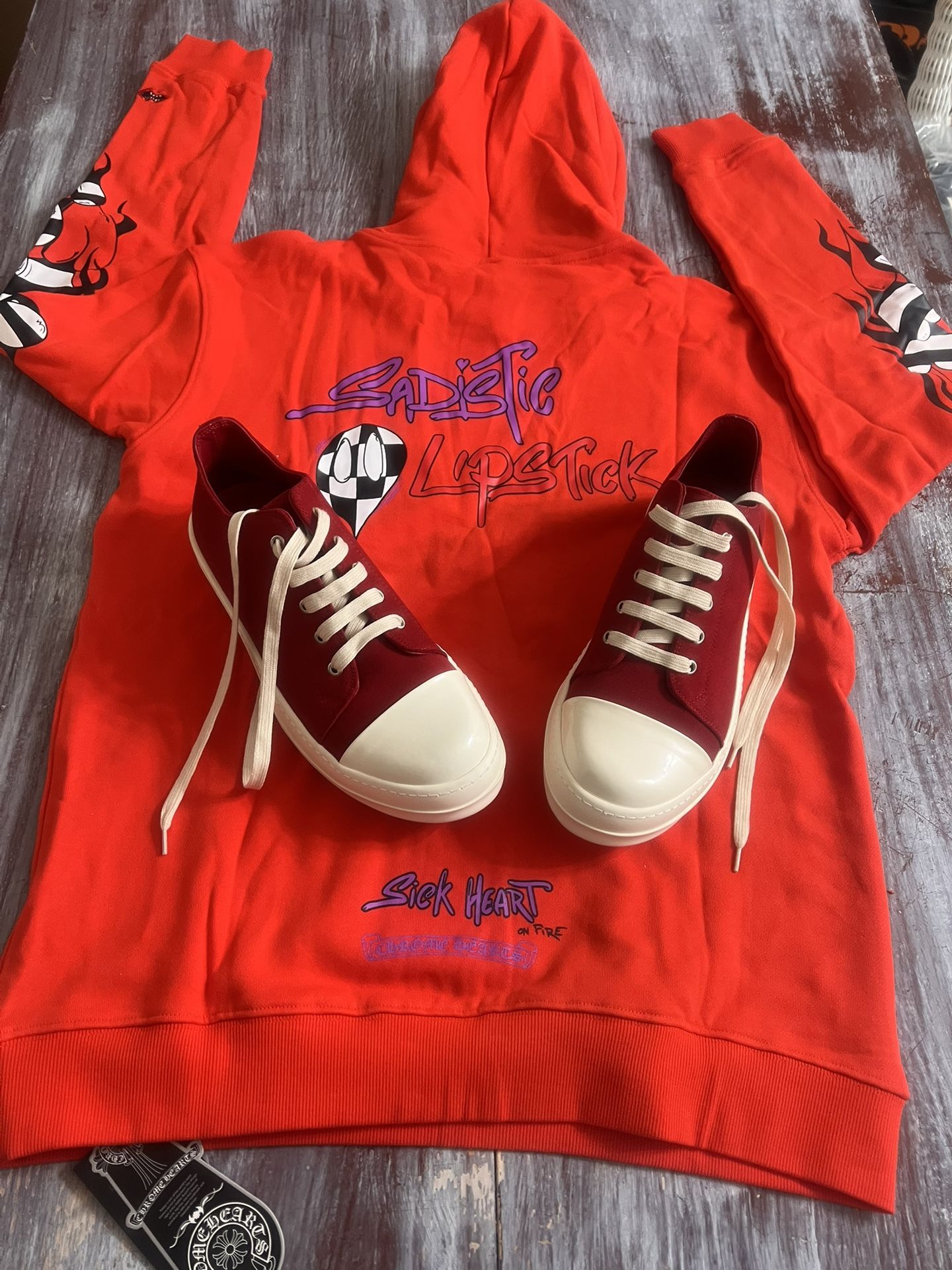 Chrome Hearts Sz L $125, Rick Owen’s Sz 10 $250