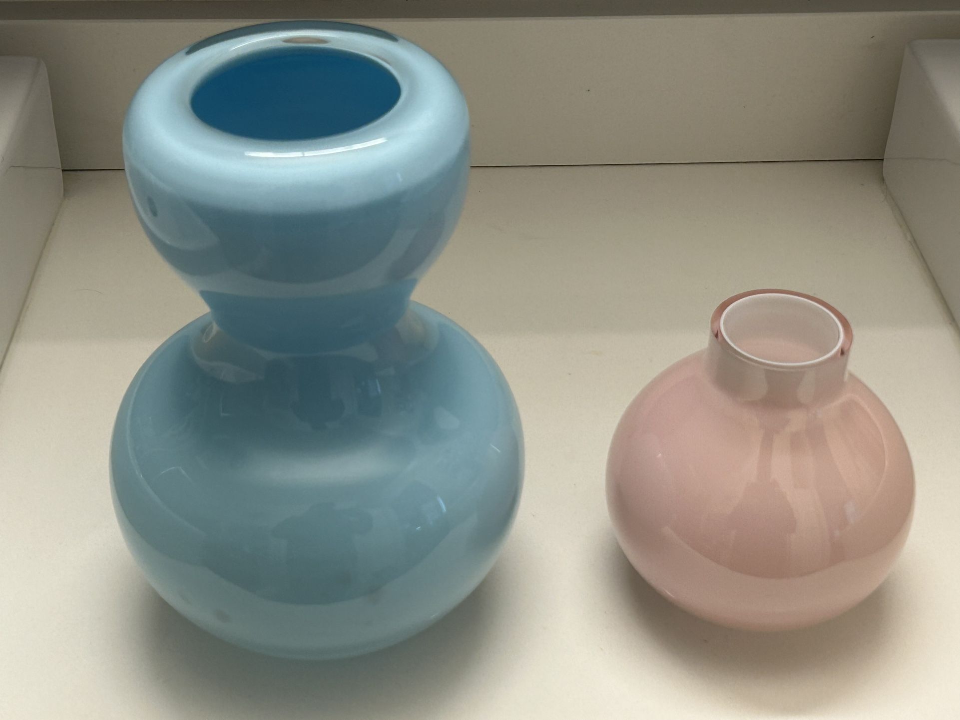 Crate and Barrel Blue Flower Vase and Pink Bud Vase