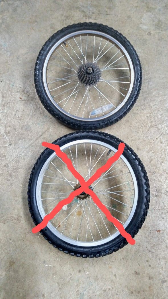 I have one 20 inch rear bicycle tire and wheel it has a seven gear cassette .