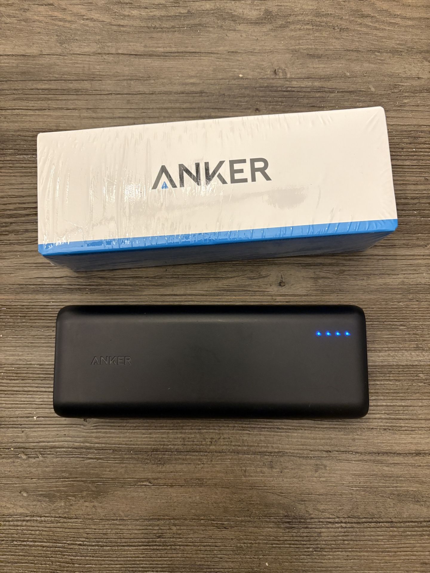 Set of 3 Brand new, factory sealed Anker PowerCore 20100mAh External Battery. (Loose item shown in photos, but not included). 2 USB ports. Must pick up in Temescal Valley. Cash, Zelle, or Venmo only.