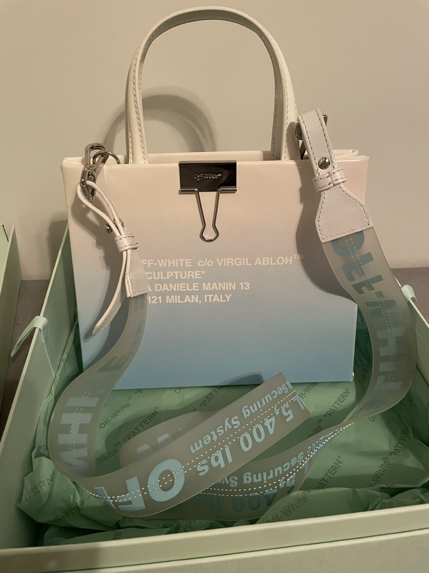 Off-white purse Degrade box bag mini light blue Practically new condition it’s been stored in its original dust bag and box I have proof of purchase and tags Paid $650 Asking $400 *will not answer low ballers