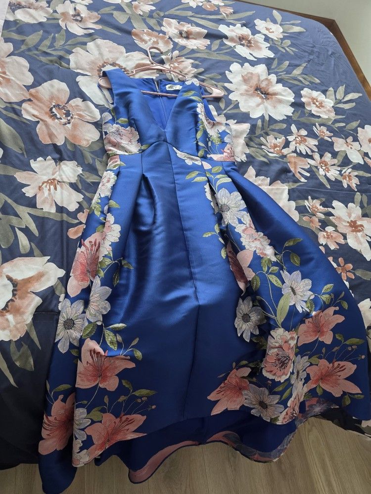 High low beautiful fabric floral gown, size 6 worn once, perfect for the holidays!