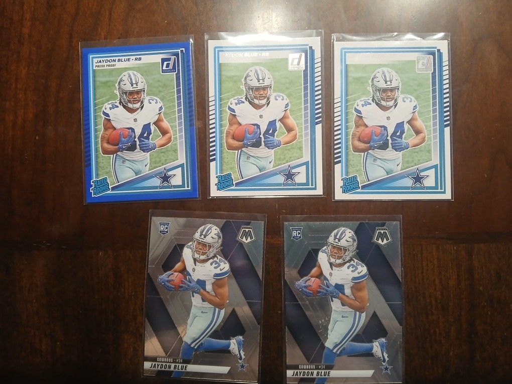 I have this 5 jaydon blue rc cards for sale fresh pulls nothing crazy im not looking I want $3.80 firm firm firm for all 5 offers will be ignored 1 rc blue press proof base 2 rc bases papers 2 rc bases chromes