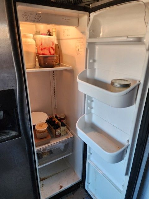 Fridge freezer for sale. Great for garage or backyard. Will be cleaned up before pickup. Asking 100 obo ice machine doesn't work but freezer and fridge cool and freeze great.