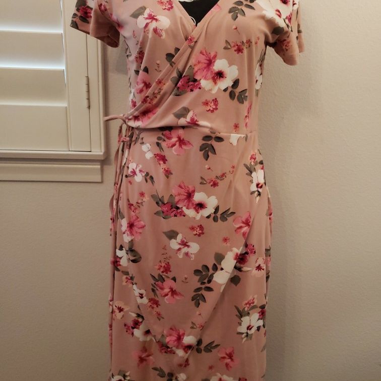 New Dusty Rose Floral Wrap Dress. Size large lightweight material great for summer.