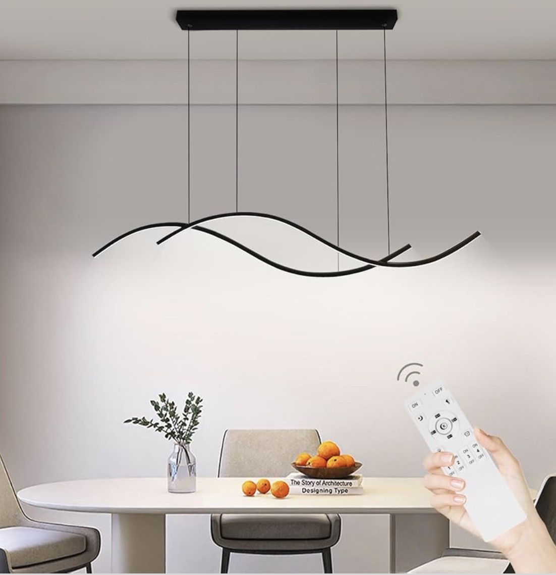 Modern Led Pendant Light, Dimmable Black Led Chandelier for Dining Room Light Fixture Over Table Creative Wave Pendant Light for Kitchen Island, Dining Room, Bedroom. L-4208