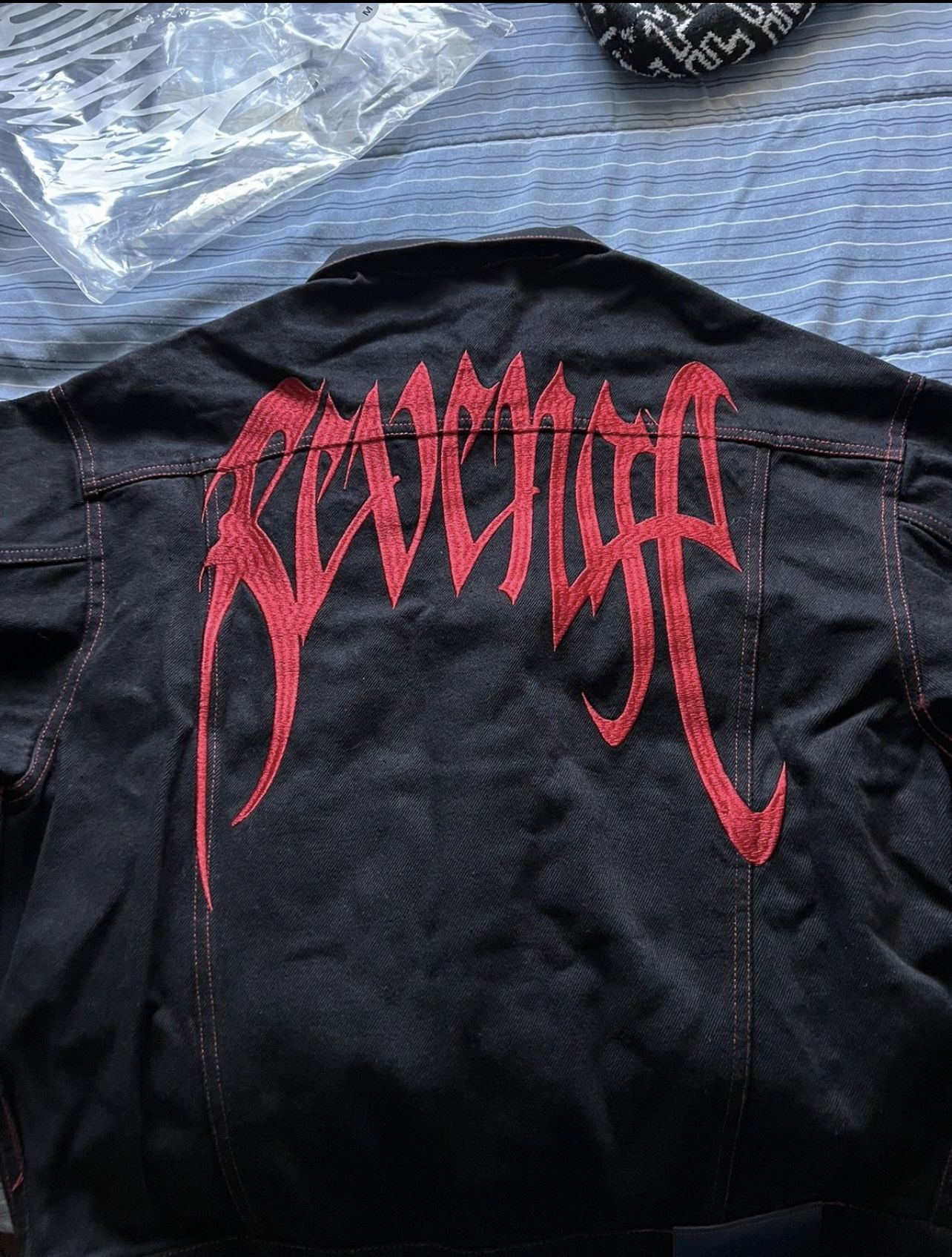 REVENGE RED EMBROIDERED LOGO BLACK DENIM JACKET