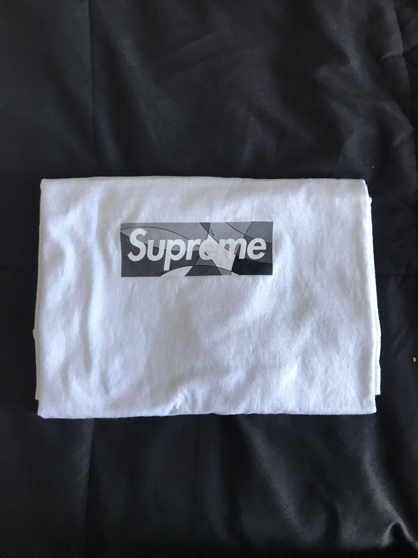 White Supreme SS21 Emilio Pucci BOGO Tee in medium. I’m excellent condition. Selling to get some cash/clean out my closet. No cracking, stains, marks or blemishes. VNDS 9/10 condition Check my page out for more gear 100 OBO