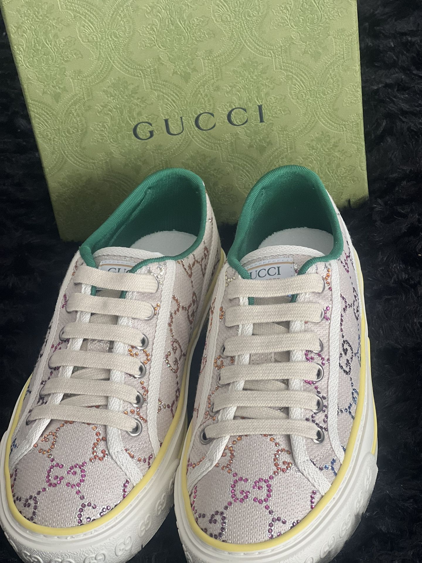 Woman Gucci shoes size 36 which is a size 6 in US. Product never worn from Bloomingdale’s