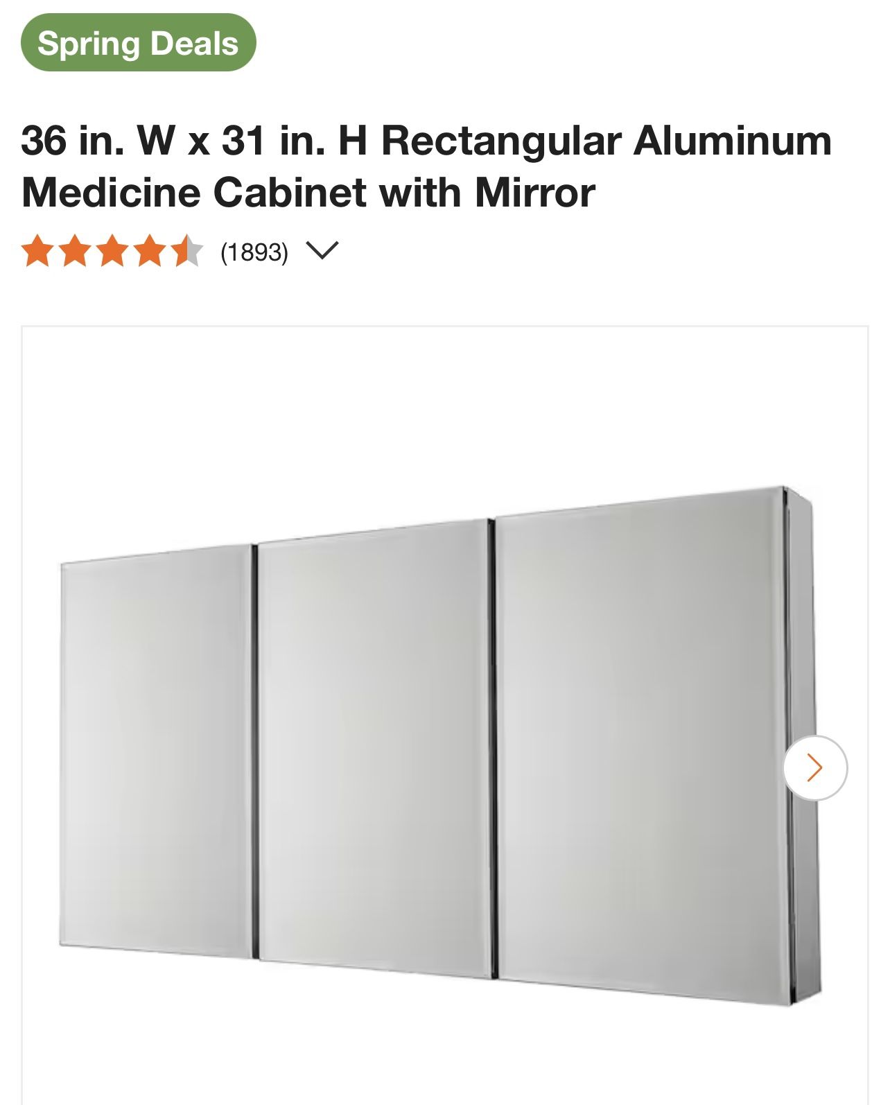 I have (1) brand new mirror in the box available for sale Rust-free aluminum construction with mirror back Self-closing hinges open up to 110 Beautiful glass shelves Recess or surface mount Cabinet is 31 in. H Cabinet is 36 in. W Cabinet is 5 in. D