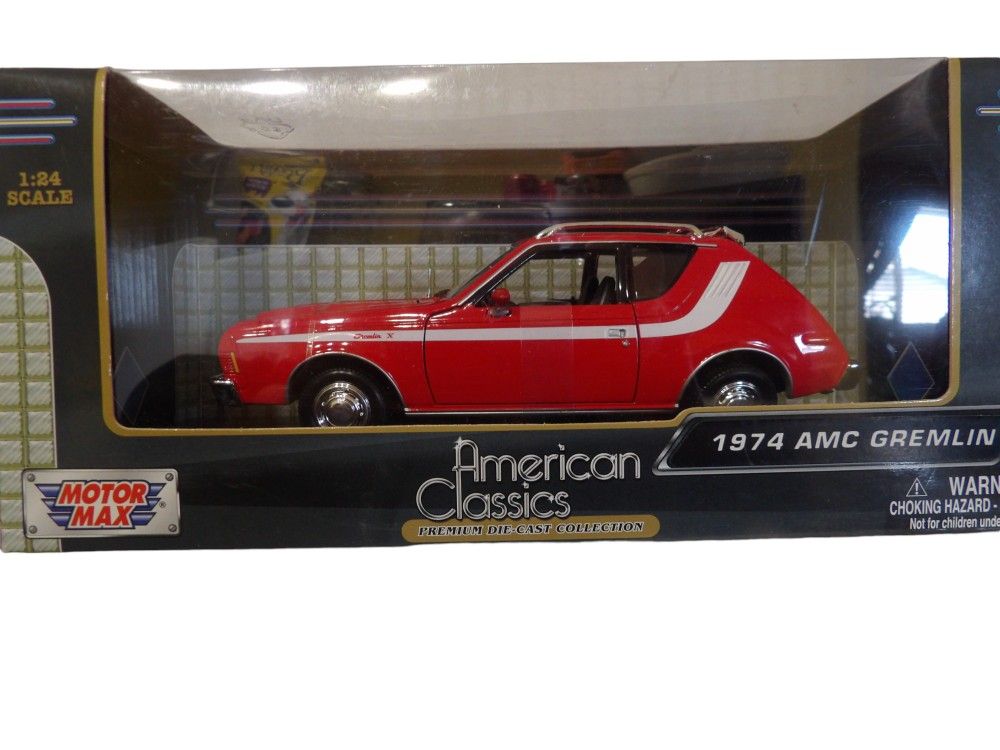 NIB MOTORMAX AMERICAN CLASSICS 1:24 DIE-CAST 1974 AMC GREMLIN. The box has a few light dings, but they do not affect the item. A fantastic addition for any collector.