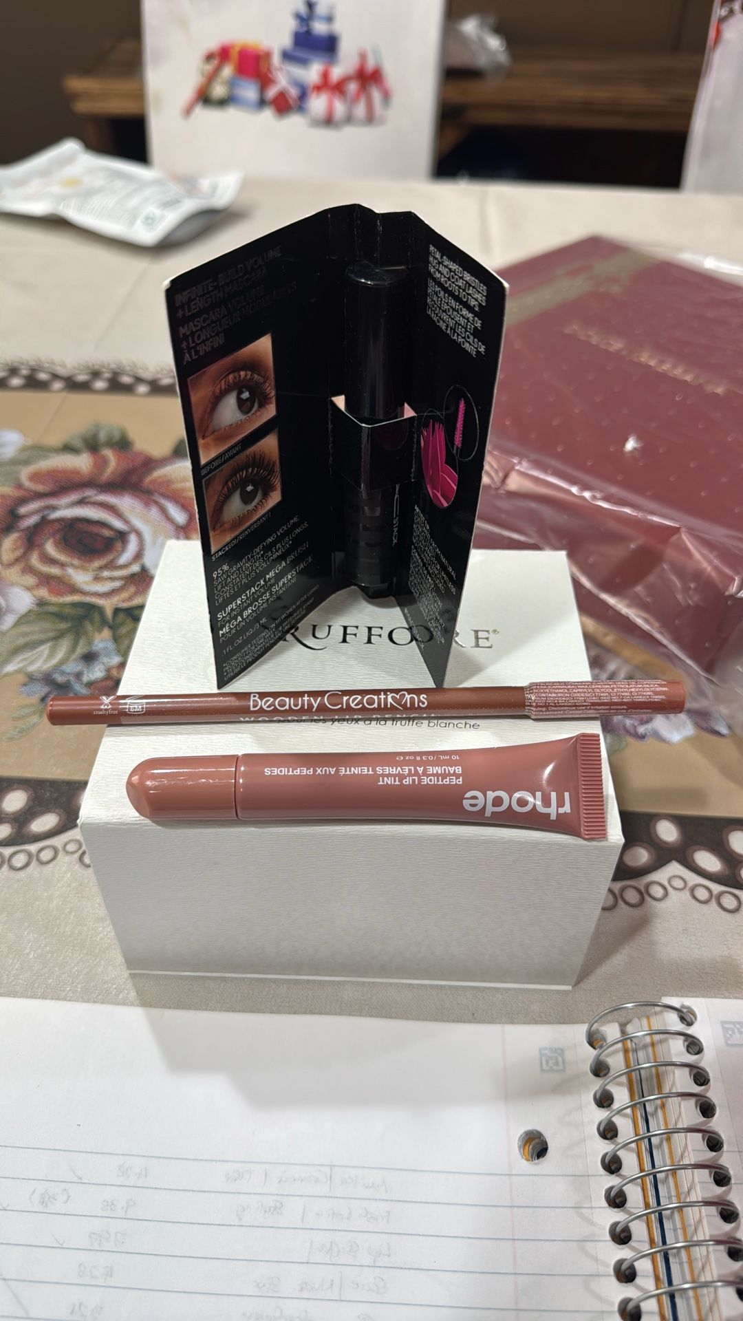 Rhode peptide lip tint shade toast Beauty creations lip pencil shade pumpkin to talk about Mac superstack mascara