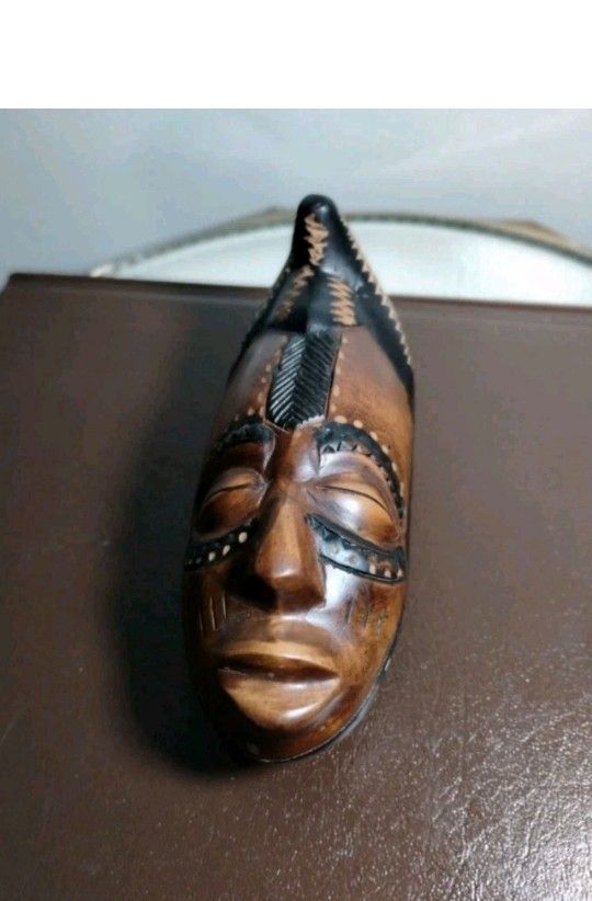 HAND CARVED WOODEN AFRICAN MASK FIGURINE - PAPERWEIGHT 5"×2" / M49