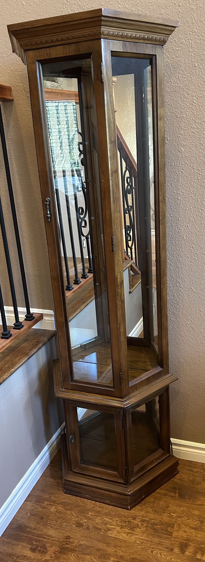 25” wide X 70” high 3 glass shelves. Lighting in both top and bottom sections.
