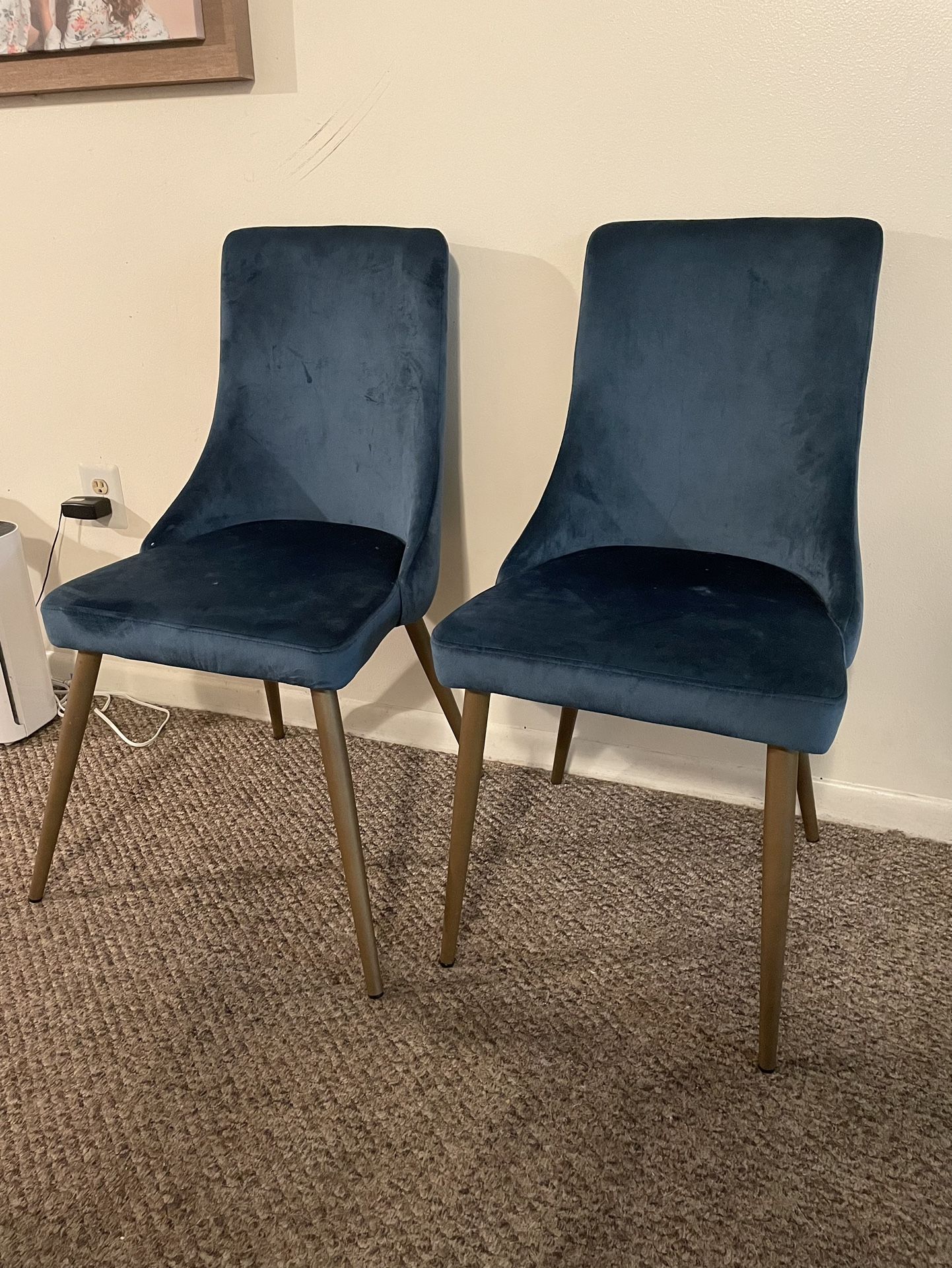 2 Beautiful Blue Velvet Chairs